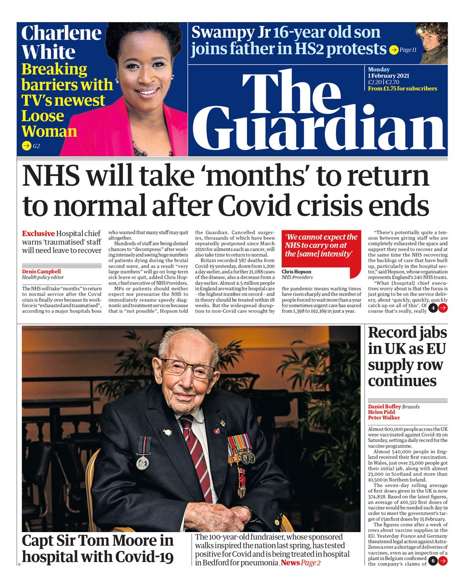 The NHS will need months to get back to normal after the coronavirus crisis is over – that’s on the front of The Guardian.