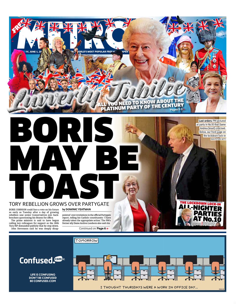 Metro says a no confidence vote could happen as soon as Tuesday because more tory MPs are questioning Boris Johnson’s leadership.