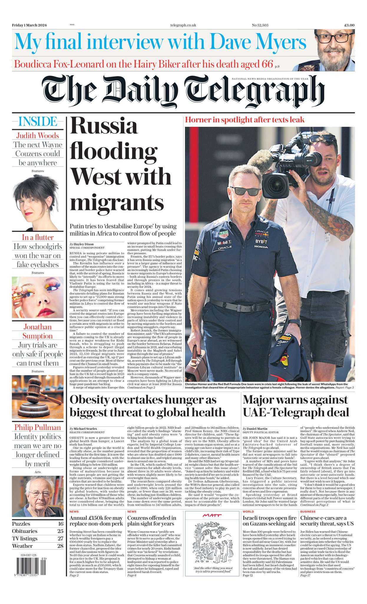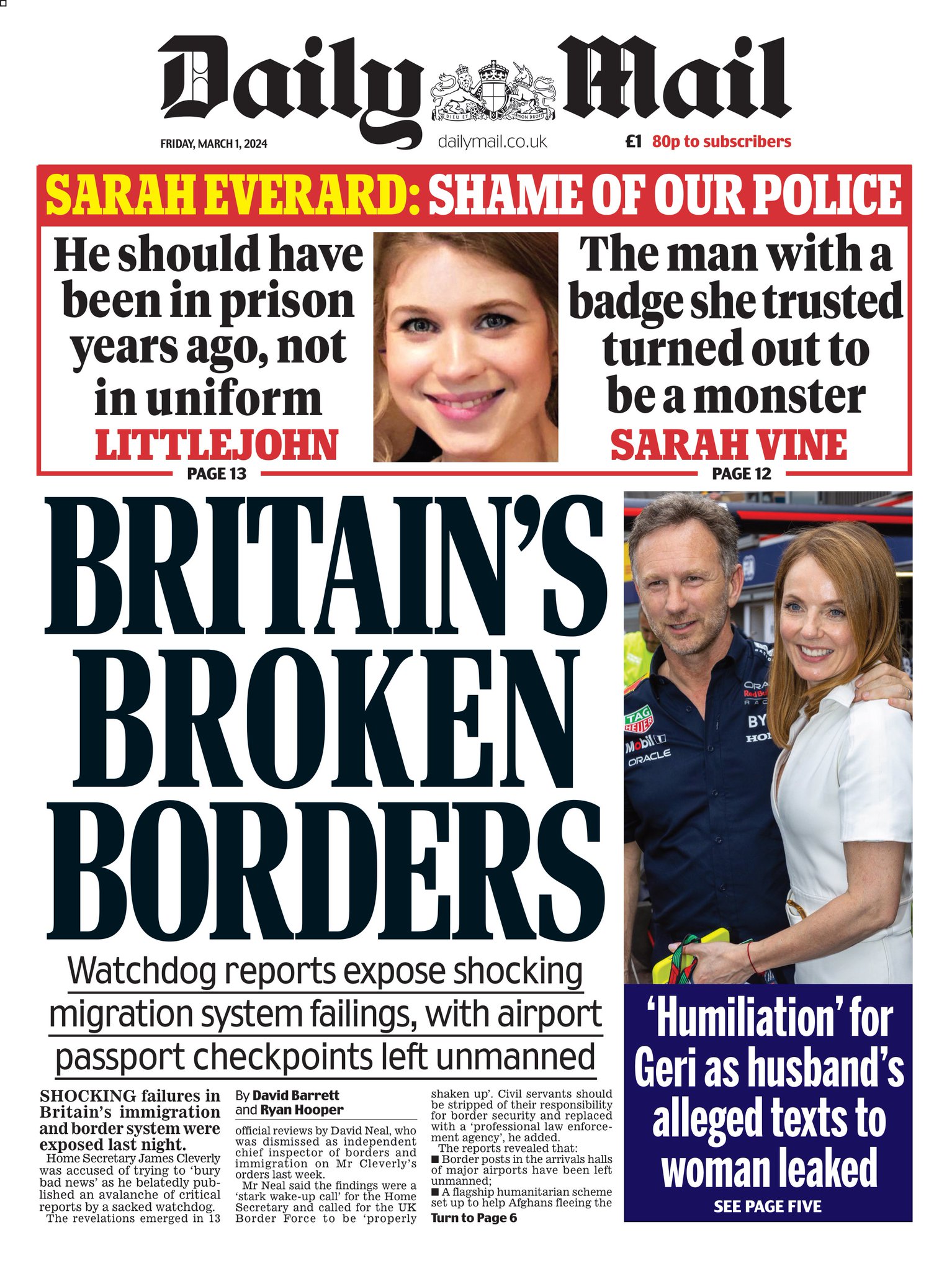 Daily Mirror Front Page 1st of March 2024
