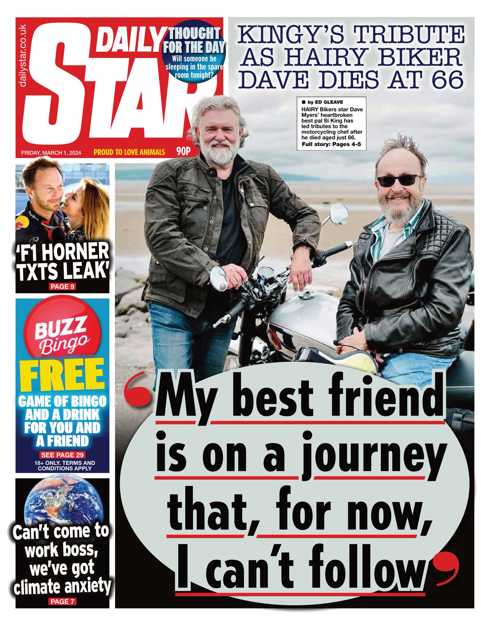 The Daily Star features Si King’s tribute to his late Hairy Bikers co-star Dave Myers.