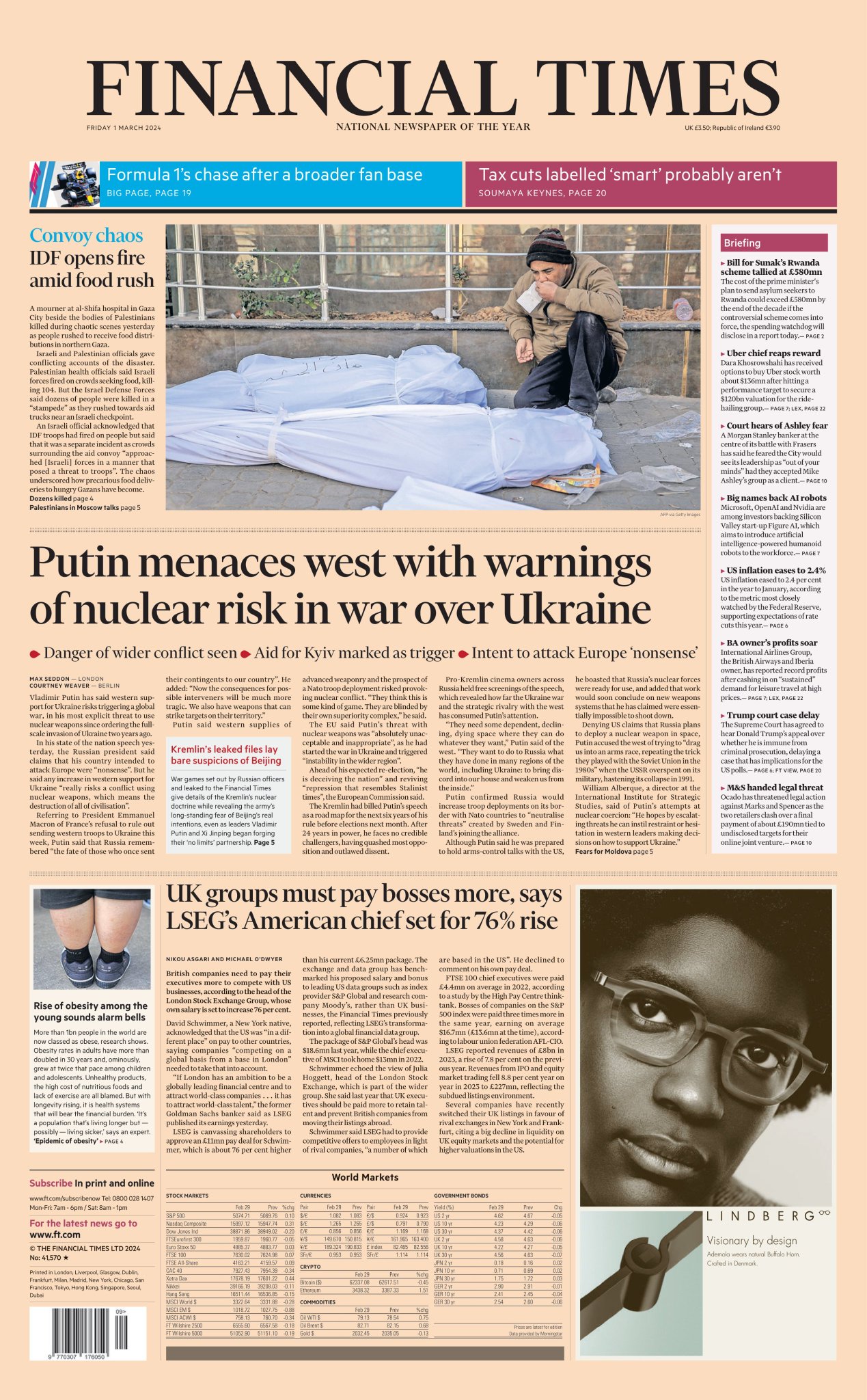The Financial Times reports on Vladimir Putin’s most explicit nuclear threat since the Ukraine conflict started.
