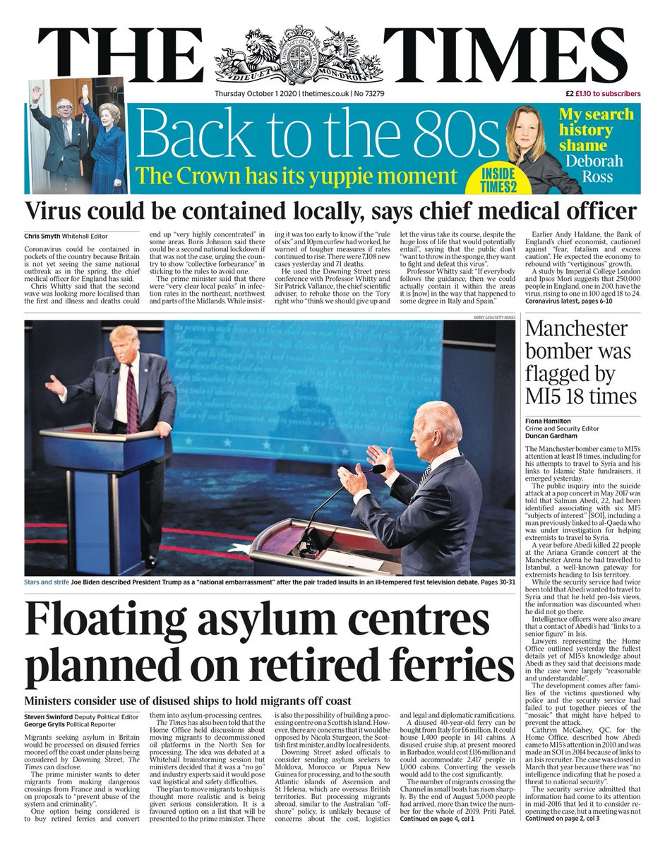 The Times leads on a story about the processing of asylum seekers in the UK. It says one option under serious consideration is buying disused ferries to house people while applications are considered.