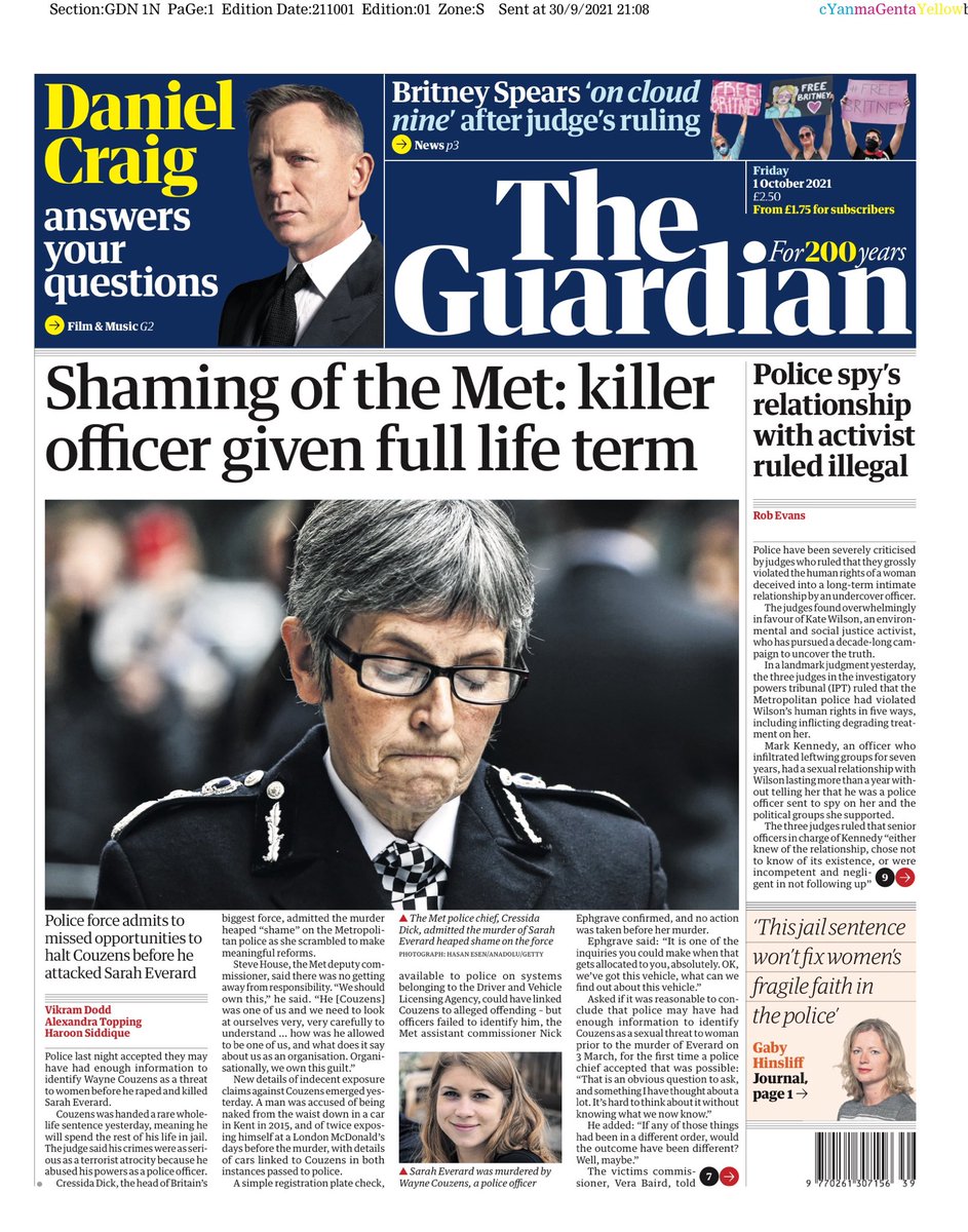 The Daily Mirror reports on calls for a “radical overhaul of policing” after Sarah Everard’s killer – ex-police officer Wayne Couzens – was sentenced.