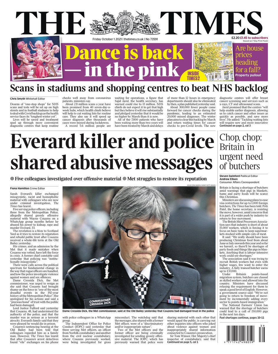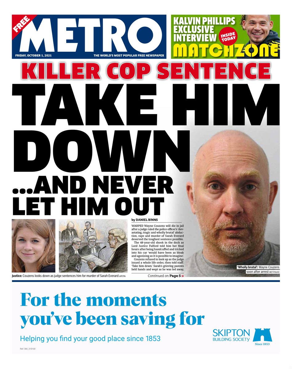 “Take him down and never let him out” – that’s the headline on the front of Metro, which leads with the sentencing of Wayne Couzens for the murder of Sarah Everard.