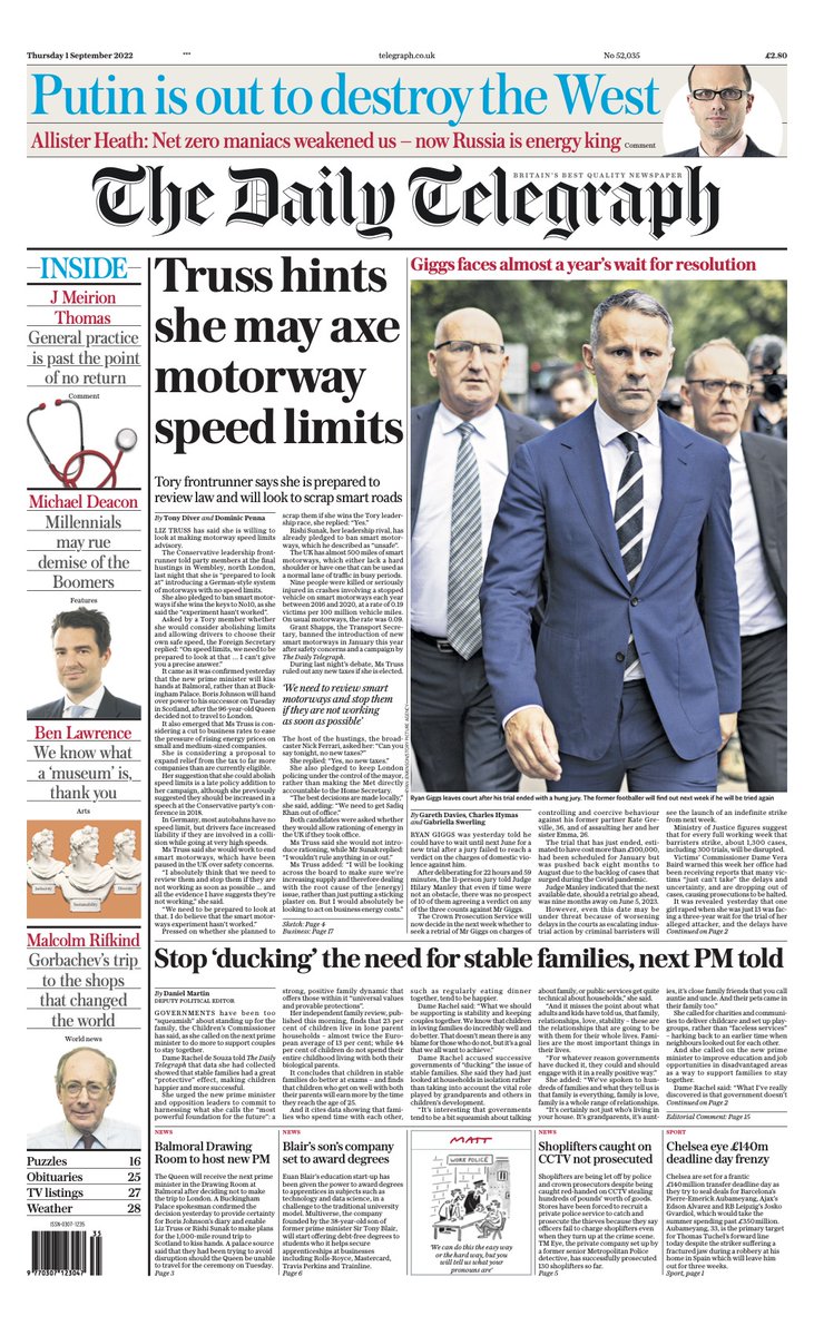 Daily Mail Front Page 1st of September 2022