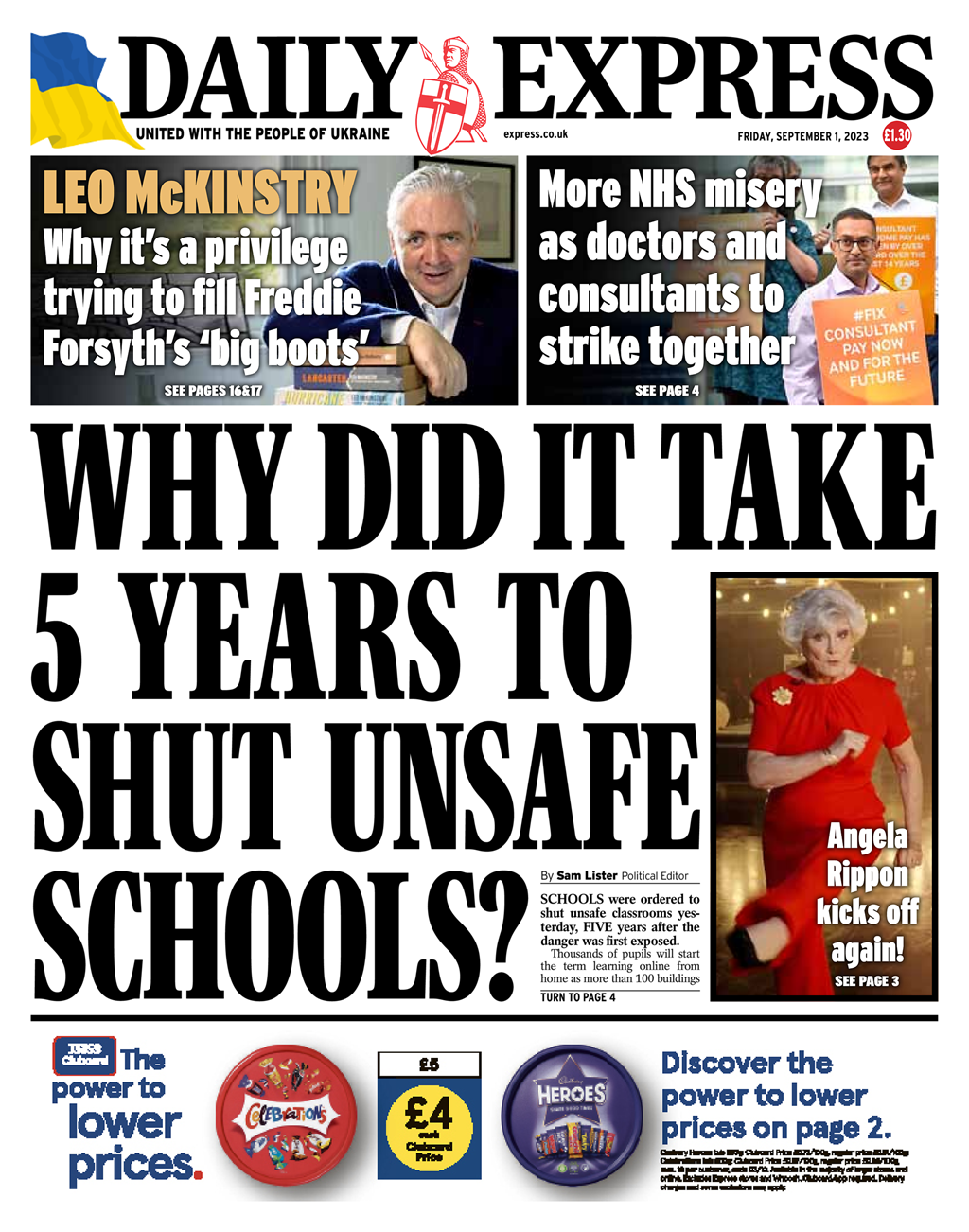 The Daily Express reports that schools have been instructed to shut down unsafe classrooms, five years after the risks were identified.