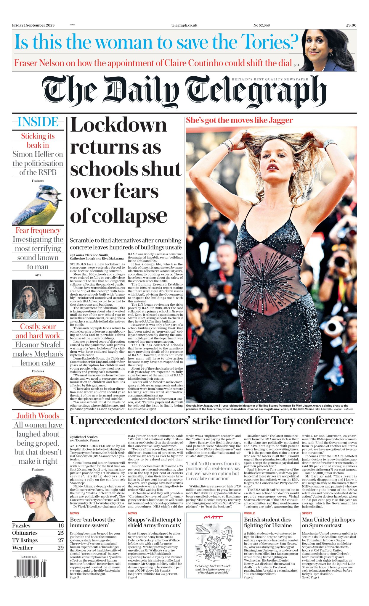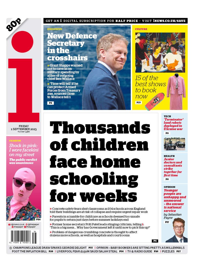 The Daily Telegraph states that a ‘new lockdown’ is imminent as schools are compelled to shut due to deteriorating concrete.
