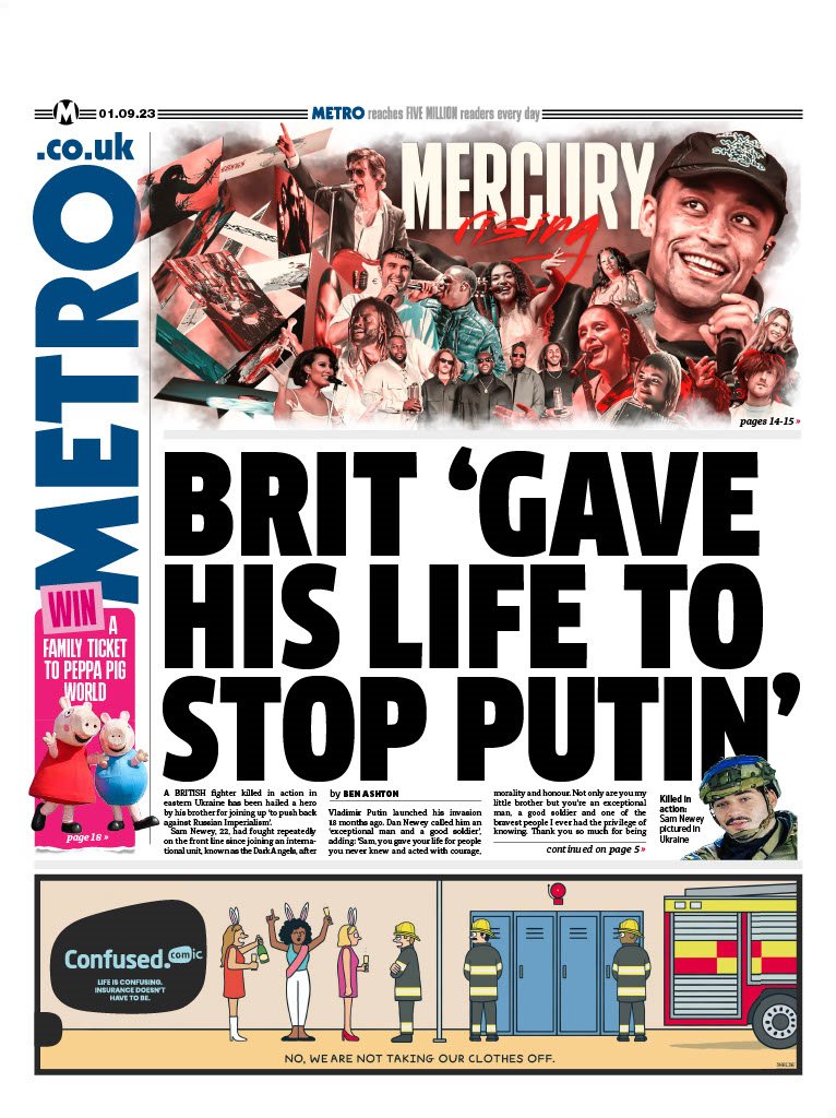 The Metro reports that a British volunteer fighter, killed in Ukraine, joined the conflict to counter Russian imperialism.