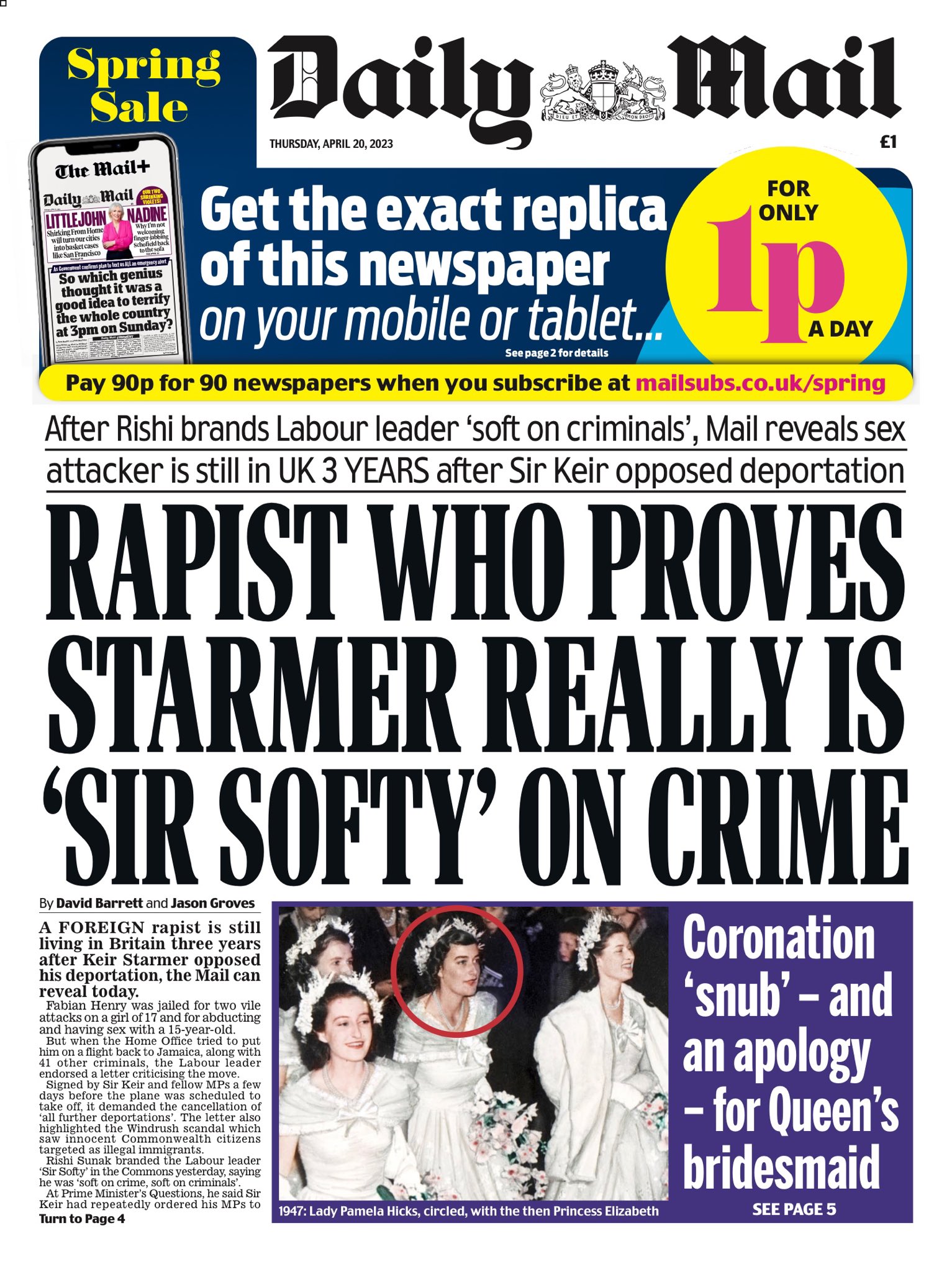 Daily Mail Front Page 20th of April 2023