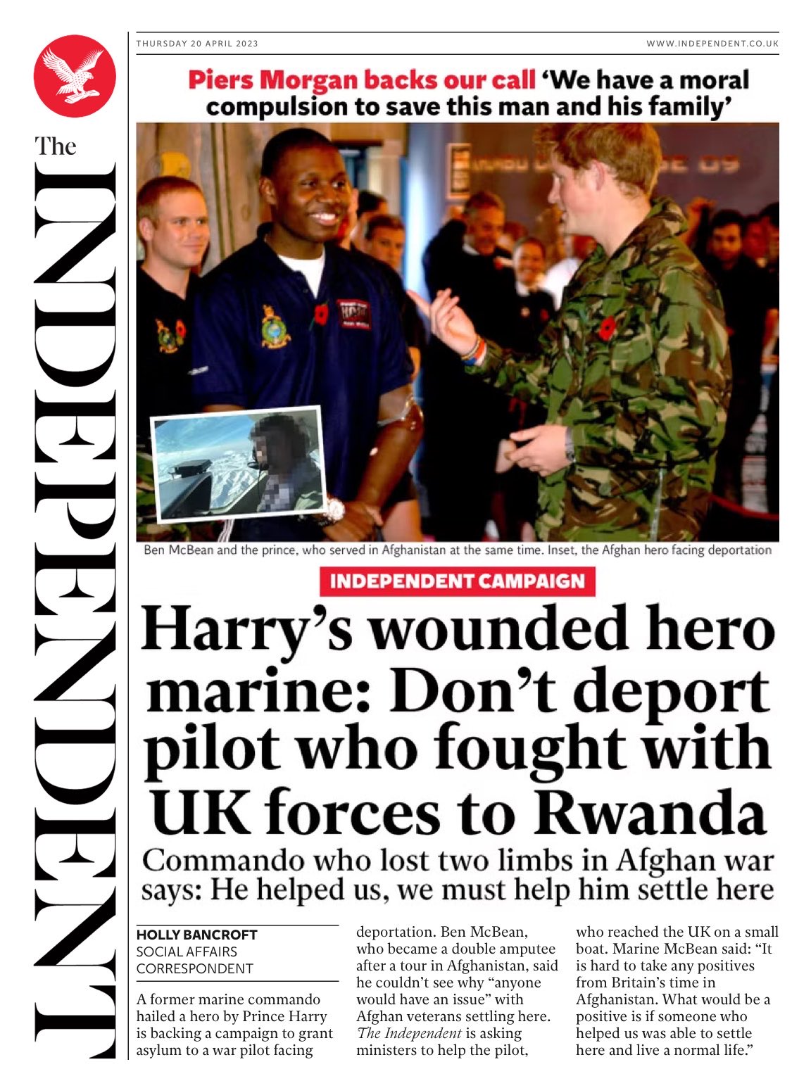 marine commando praised by Prince Harry supports a campaign to grant asylum to a war pilot facing deportation, according to The Independent.