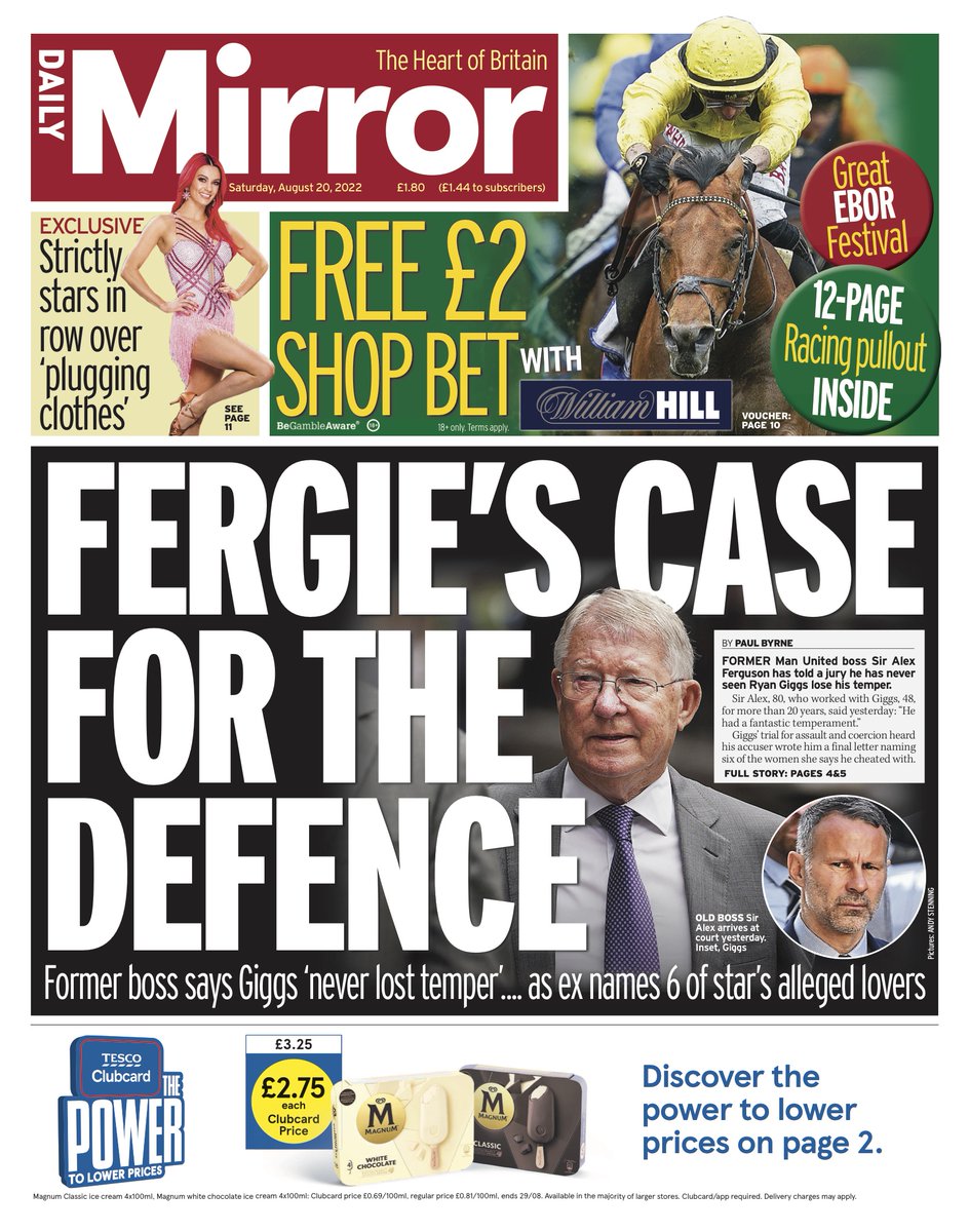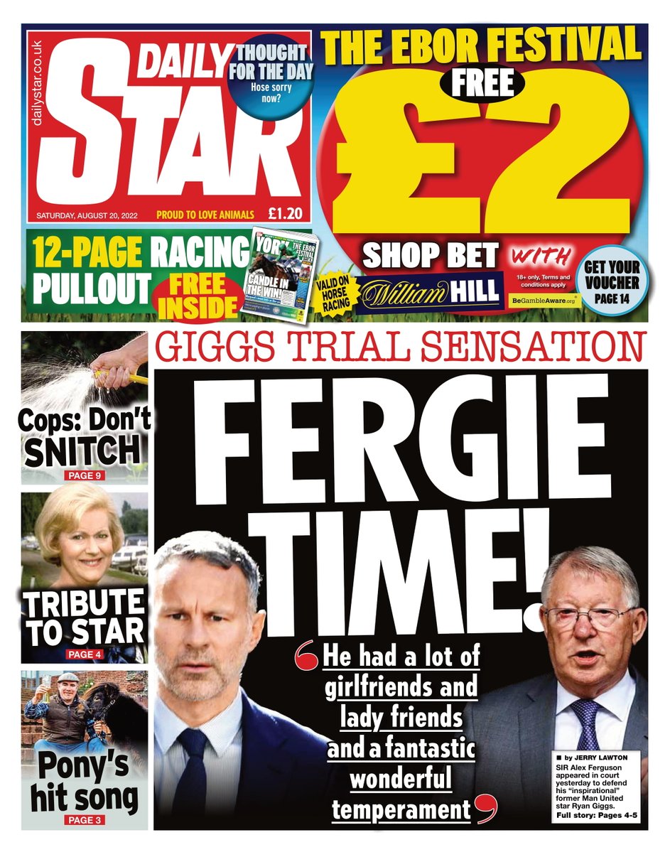 The Daily Star reports that former Manchester United manager Sir Alex Ferguson appeared in court to defend ex-player Ryan Giggs, who he described as having a “fantastic temperament”.