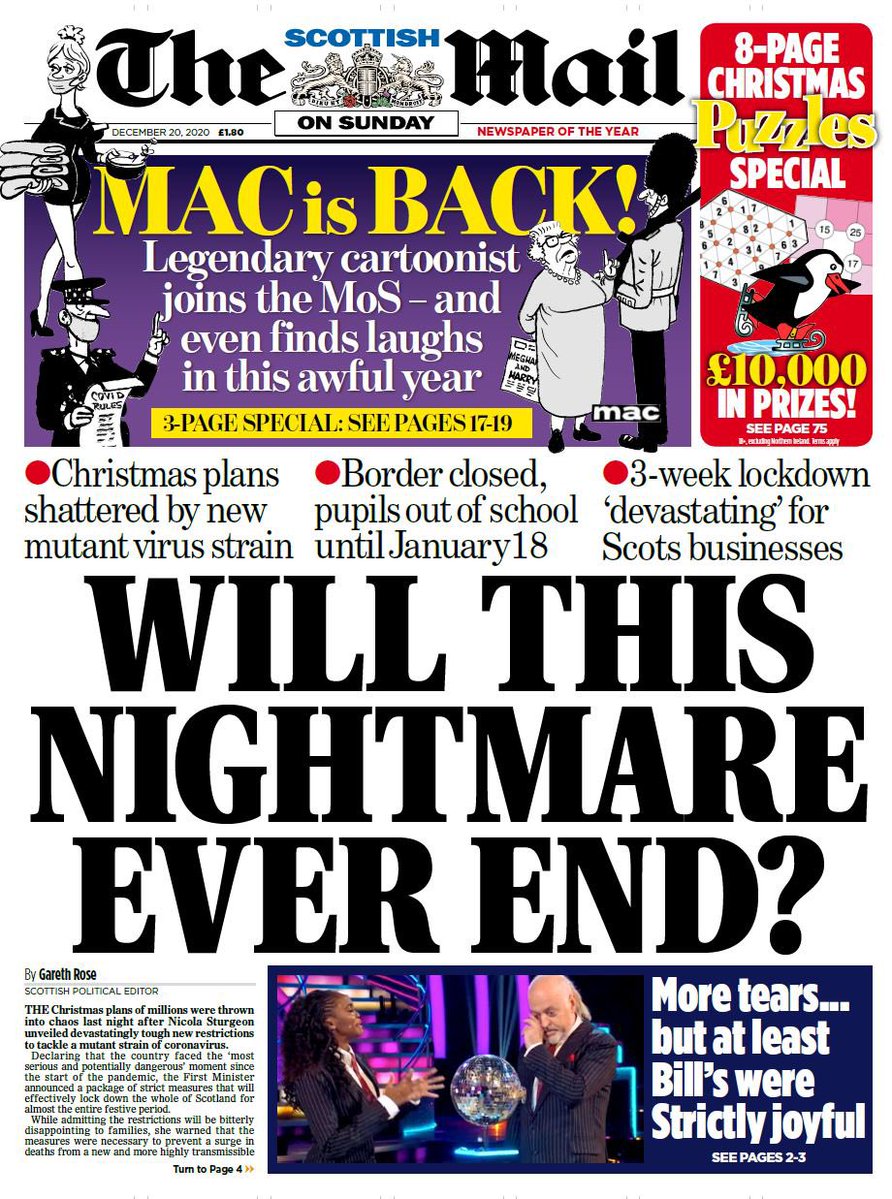Will this nightmare ever end? That is the question asked by the Mail On Sunday, as the coronavirus ruins Christmas.