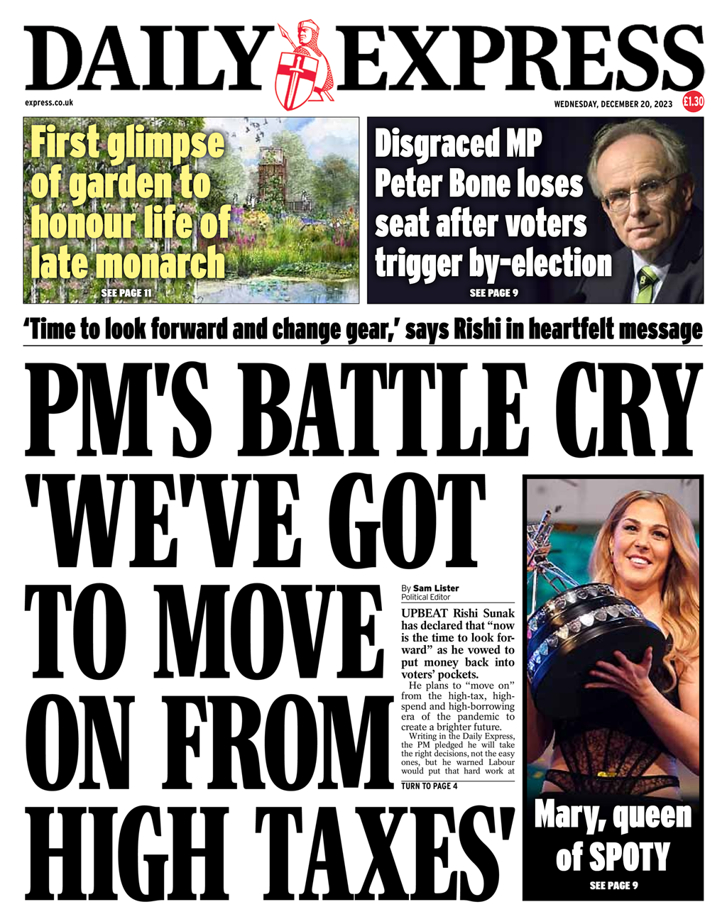 The Daily Express reports on PM Rishi Sunak’s intent to leave behind the pandemic’s high-tax era for a brighter future.