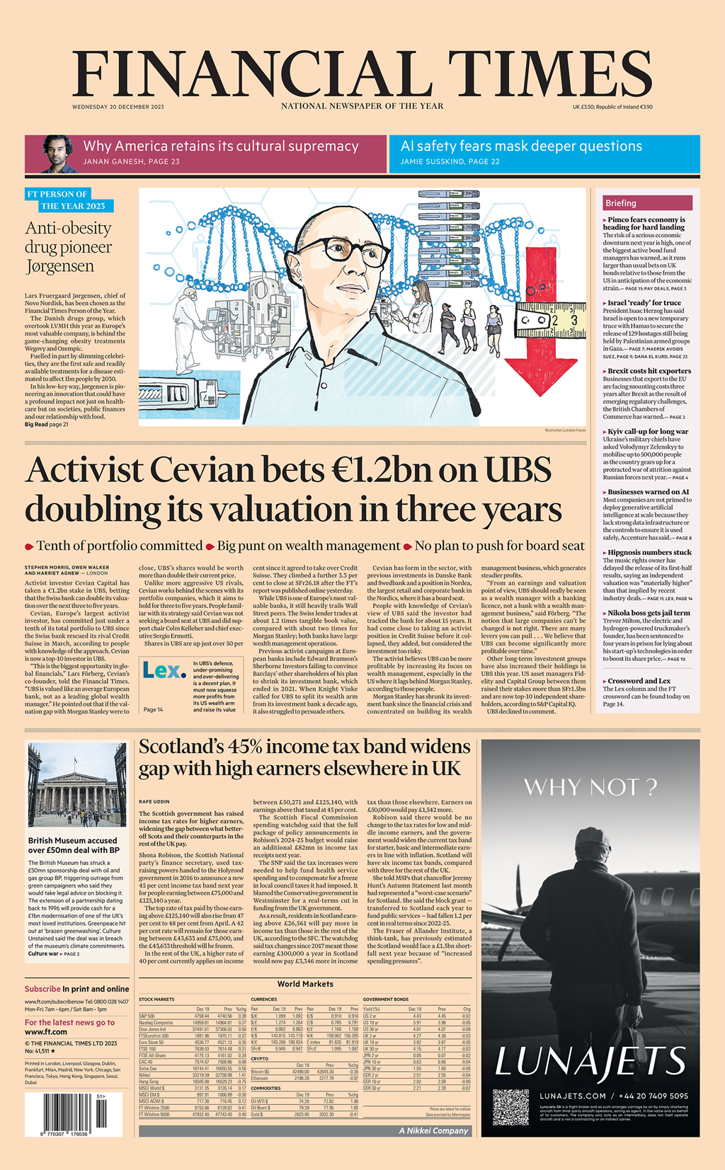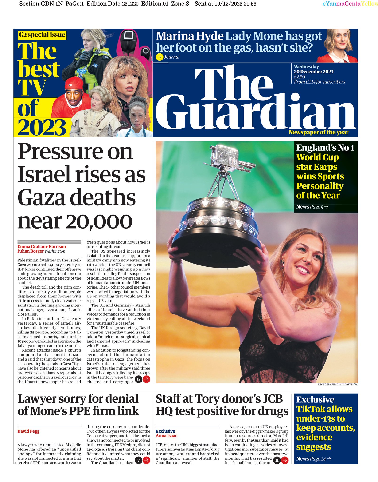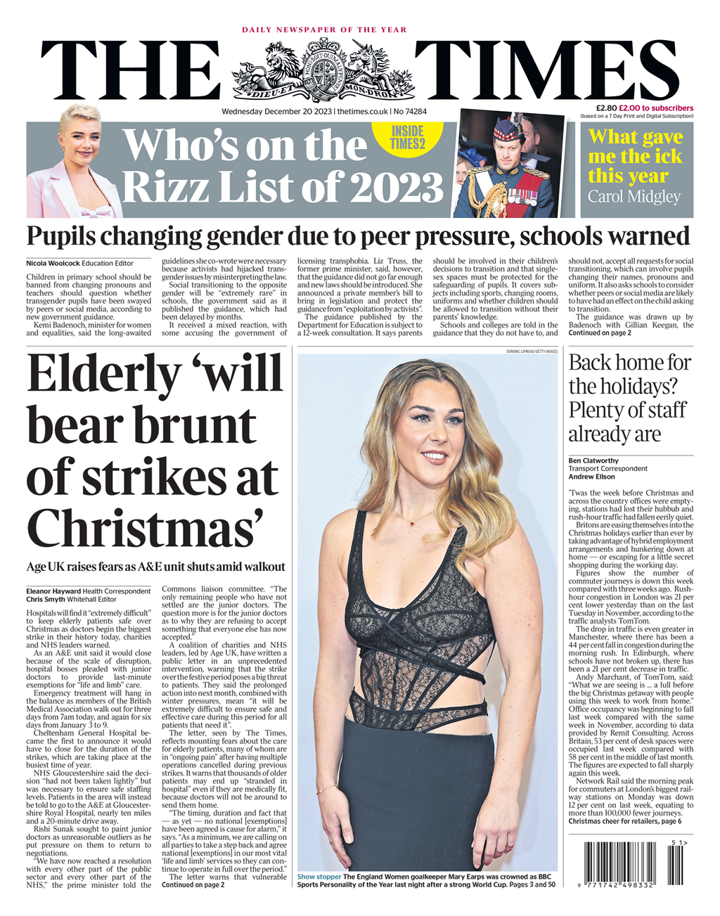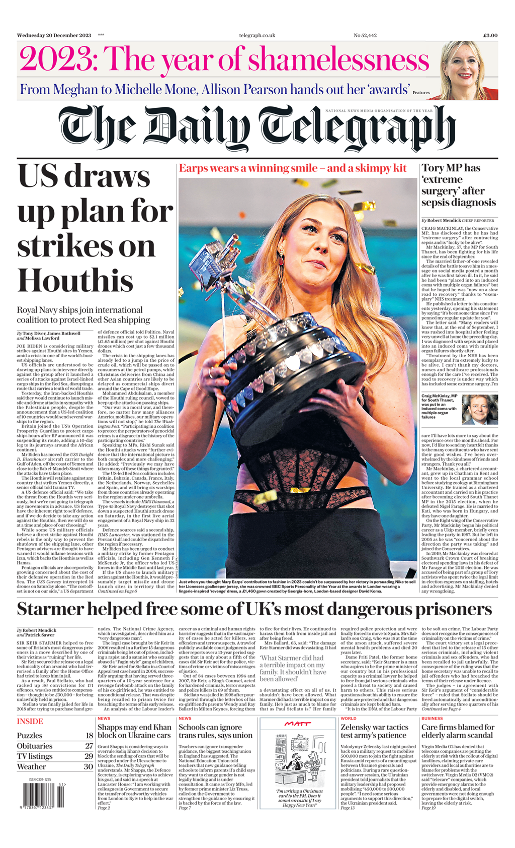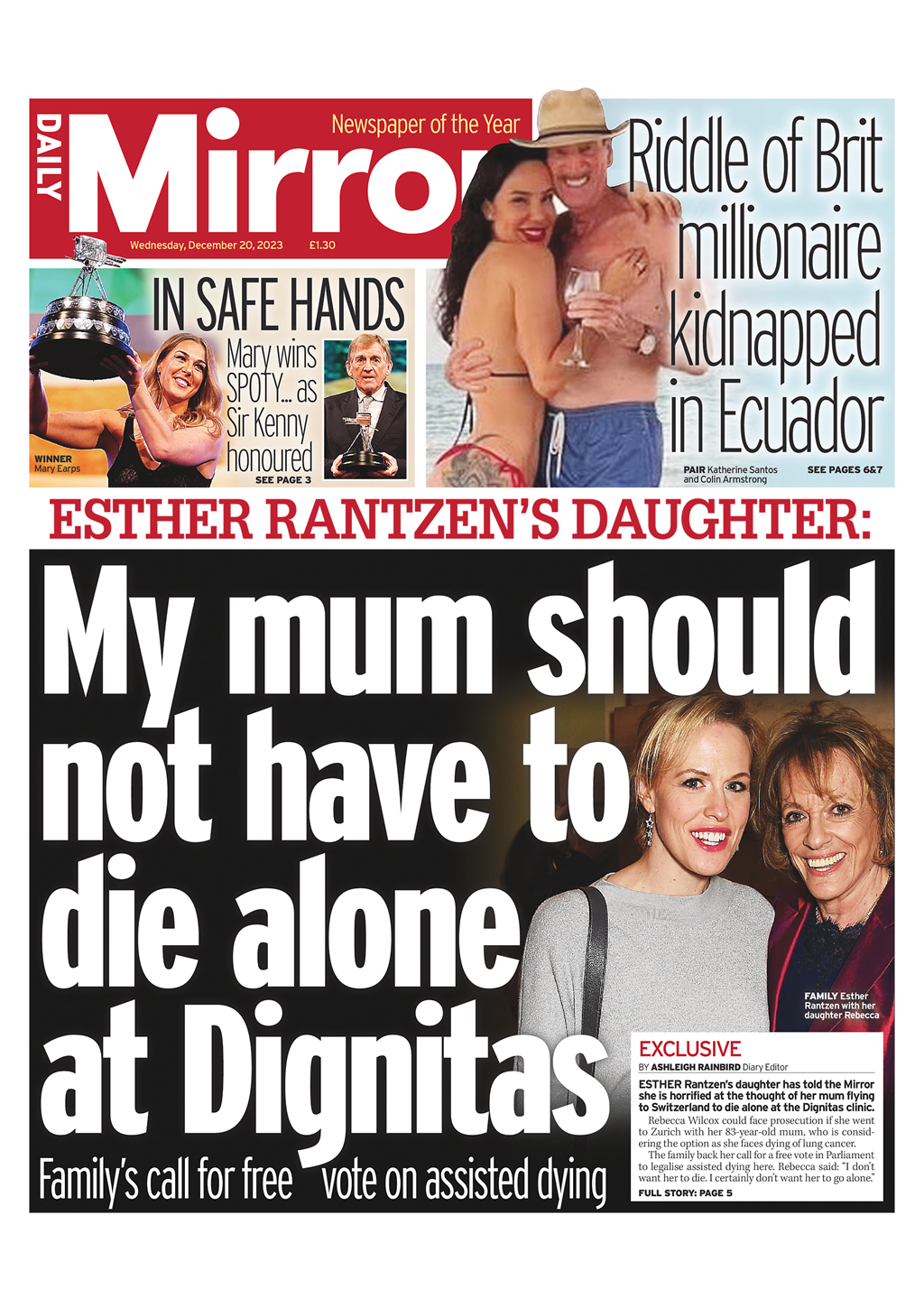 Daily Mirror Front Page 20th of December 2023