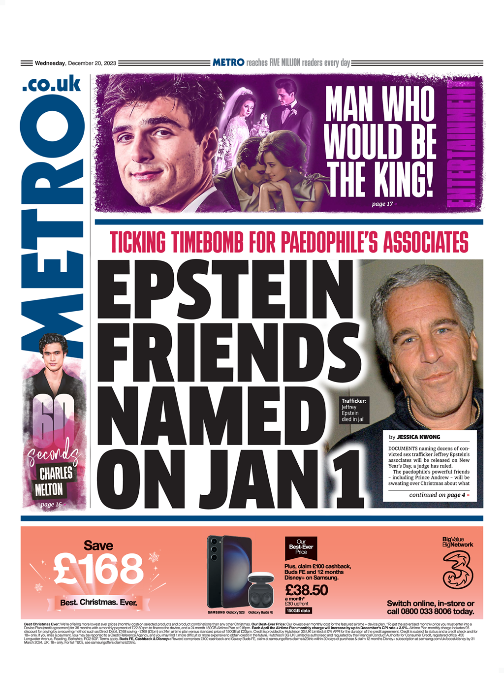 The Metro reveals that names of Jeffrey Epstein’s associates will be disclosed on New Year’s Day.