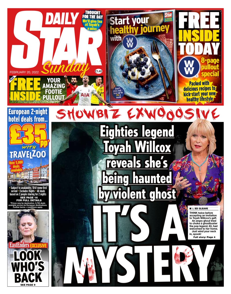 A violent ghost is haunting 80s star Toyah Willcox, the Daily Star Sunday says.