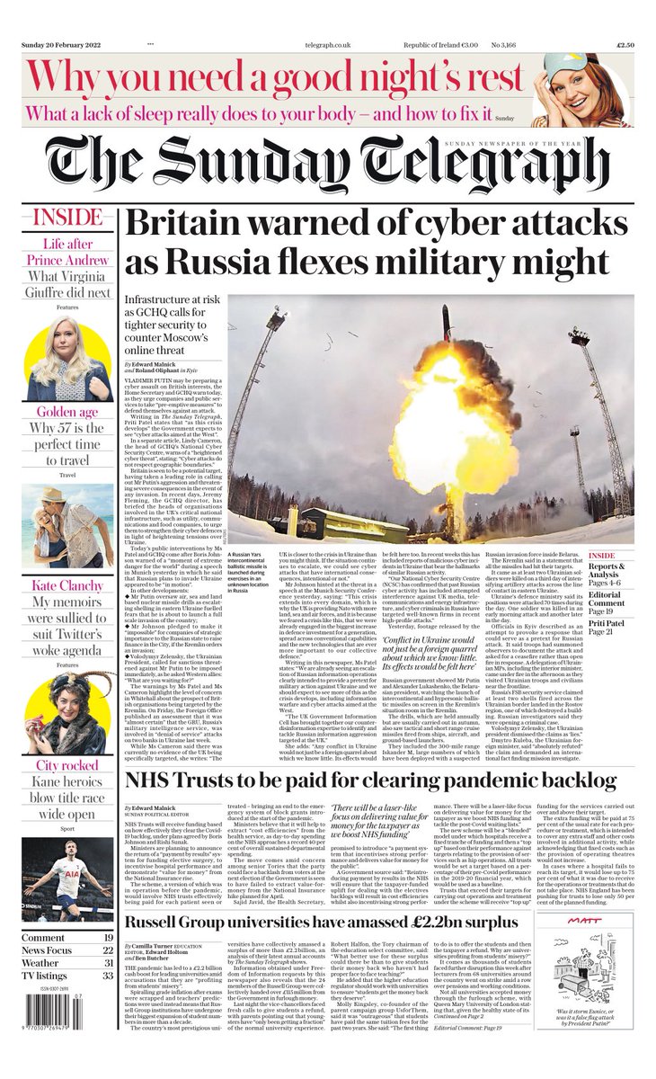 Home Secretary Priti Patel tells The Sunday Telegraph that Russia could be planning cyber attacks on British interests.