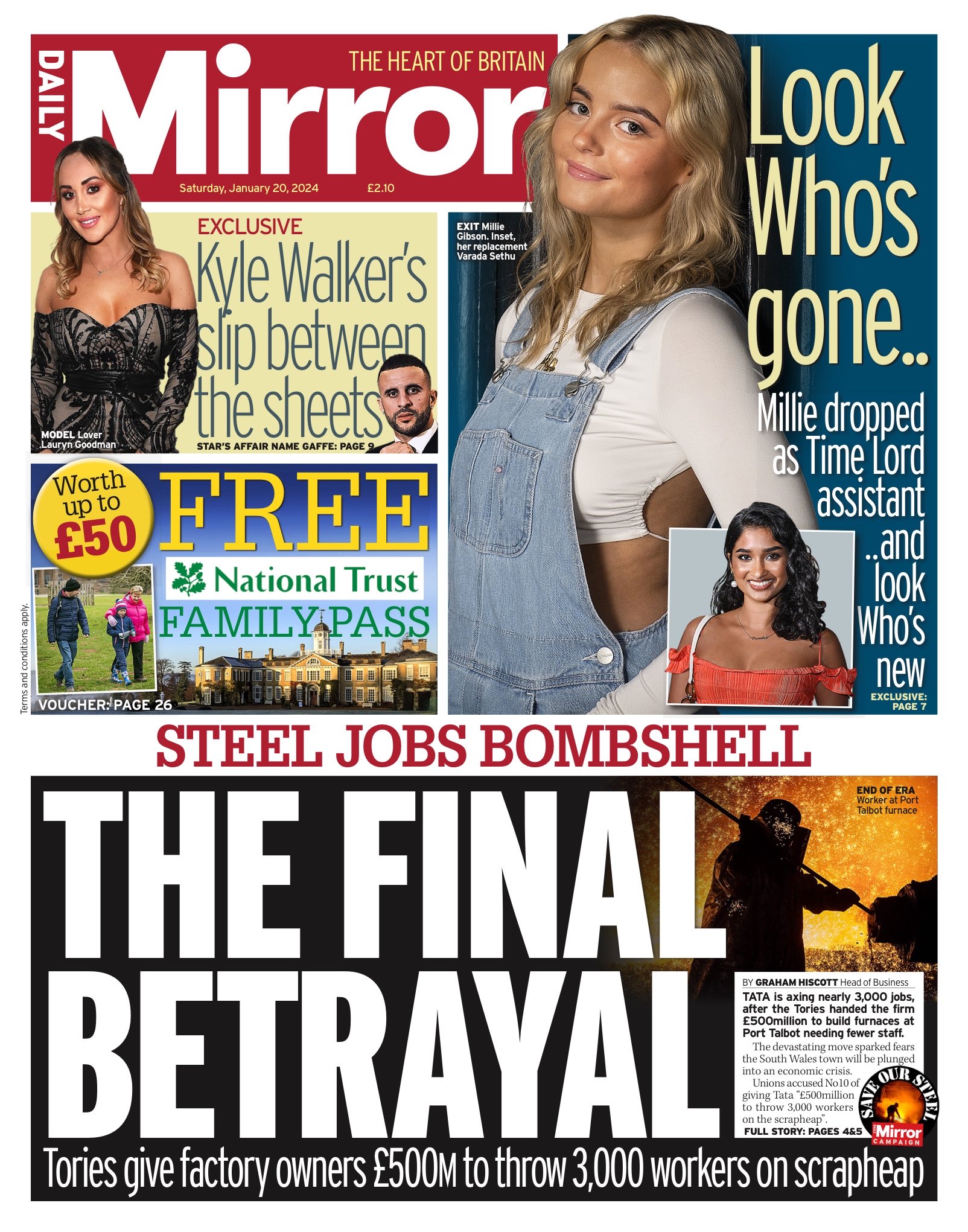 The Daily Mirror reports on Tata Steel’s decision to cut nearly 3,000 jobs despite a £500m Conservative funding.