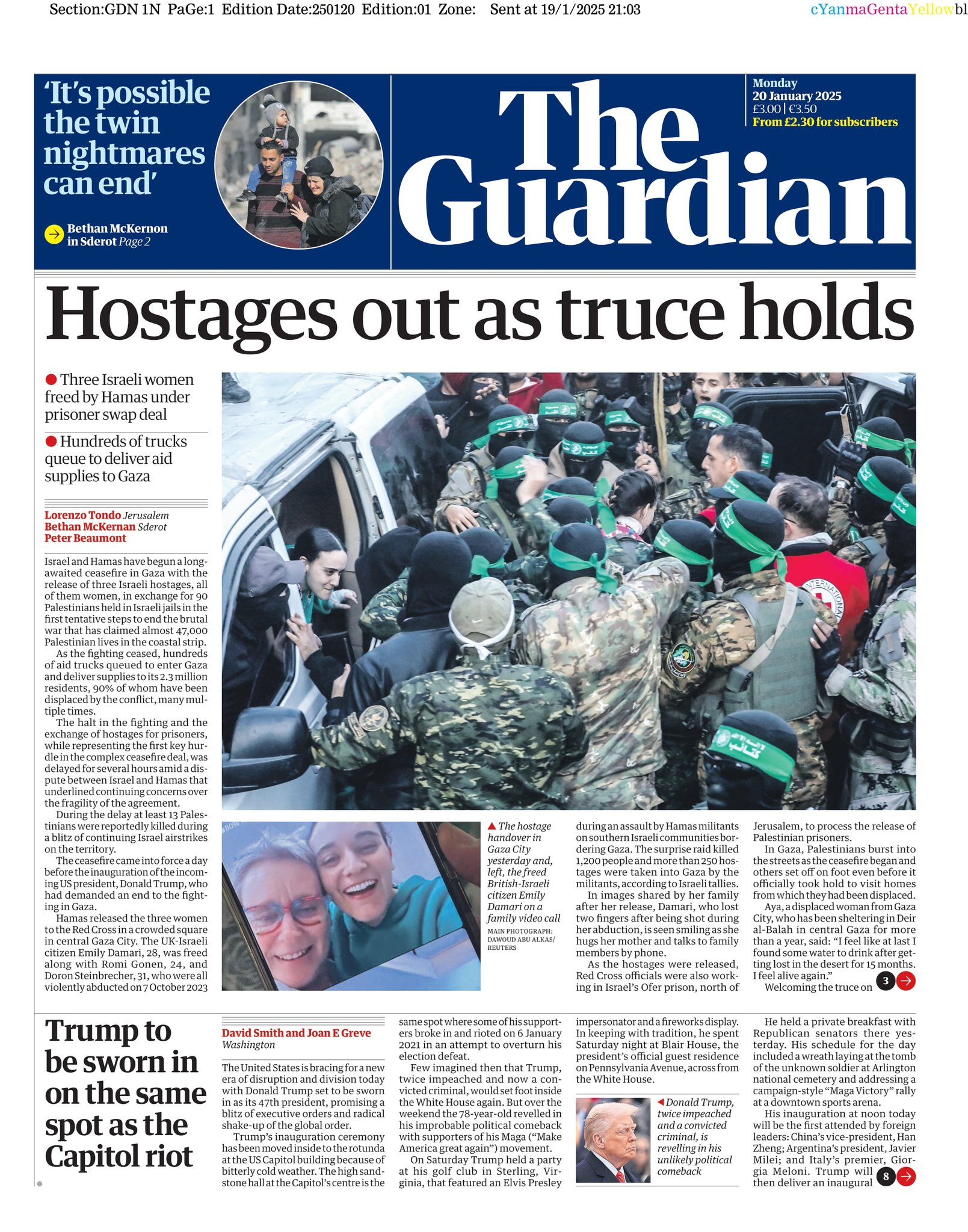 Guardian Front Page 20th of January 2025