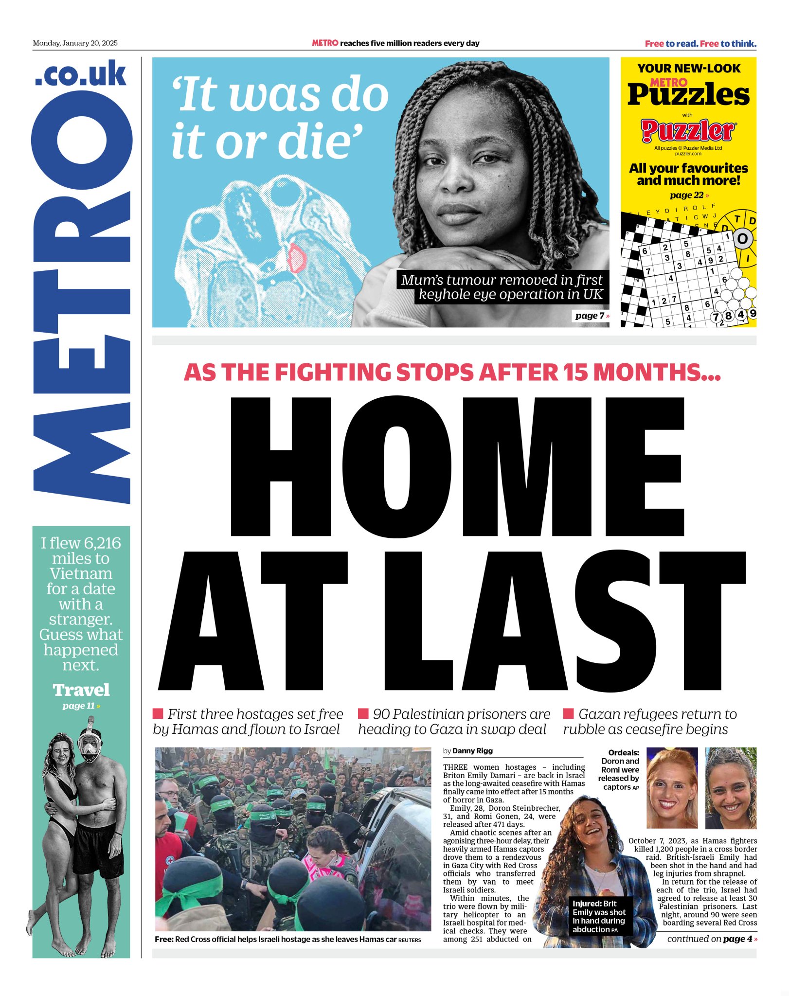 Metro Front Page 20th of January 2025