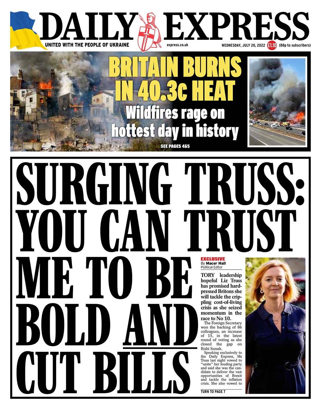 According to the Daily Express, Liz Truss has taken the lead in the race for Number 10. Her promise is to “cut bills”.