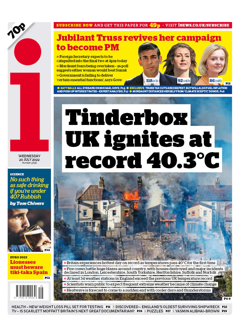 Fires broke out all over Britain as the i describes the country as a tinderbox.