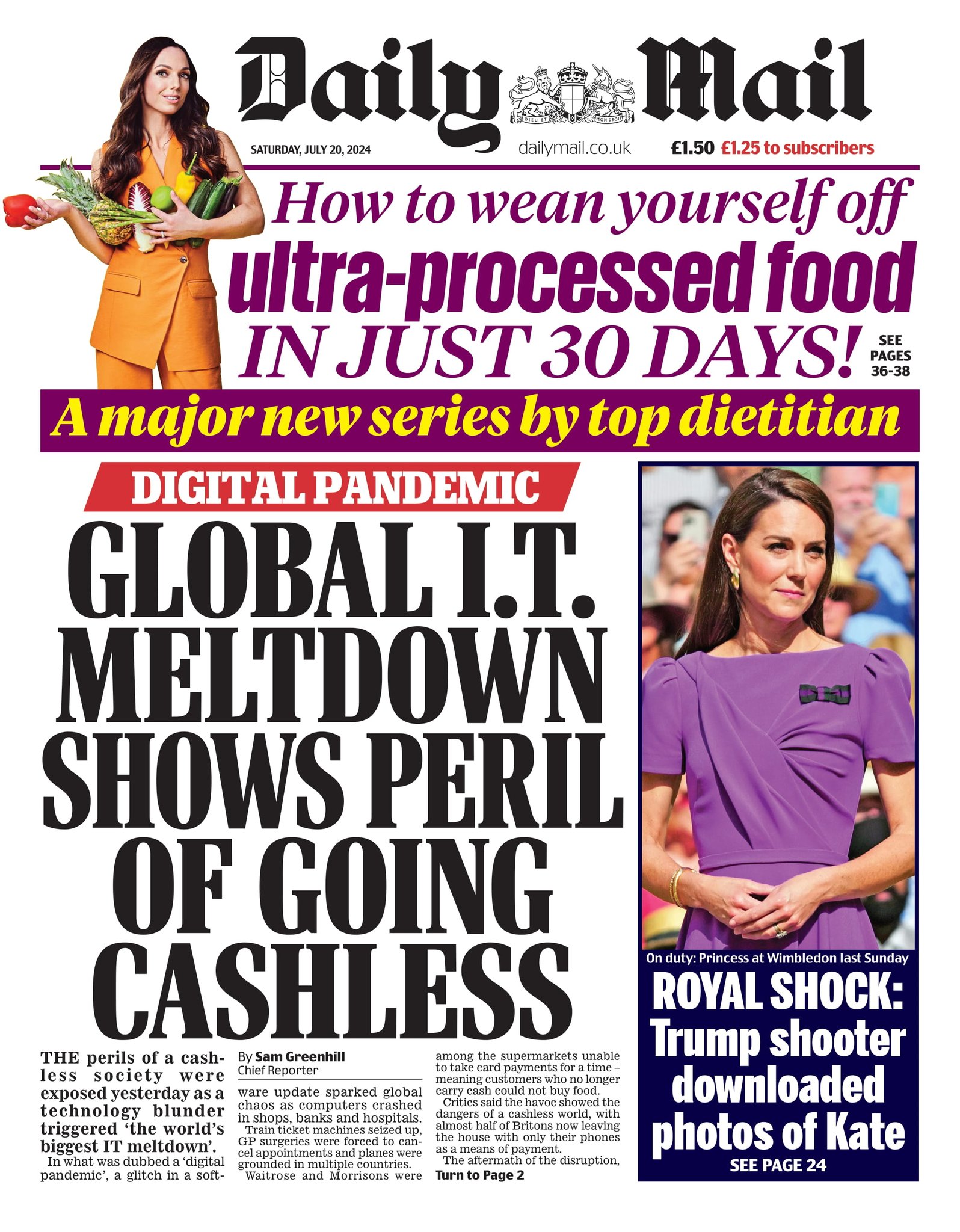 A global IT meltdown caused significant disruptions by revealing the vulnerabilities of a cashless society, as computers crashed in shops, banks, and hospitals, with train ticket machines, flights, and supermarket payments all being significantly impacted.