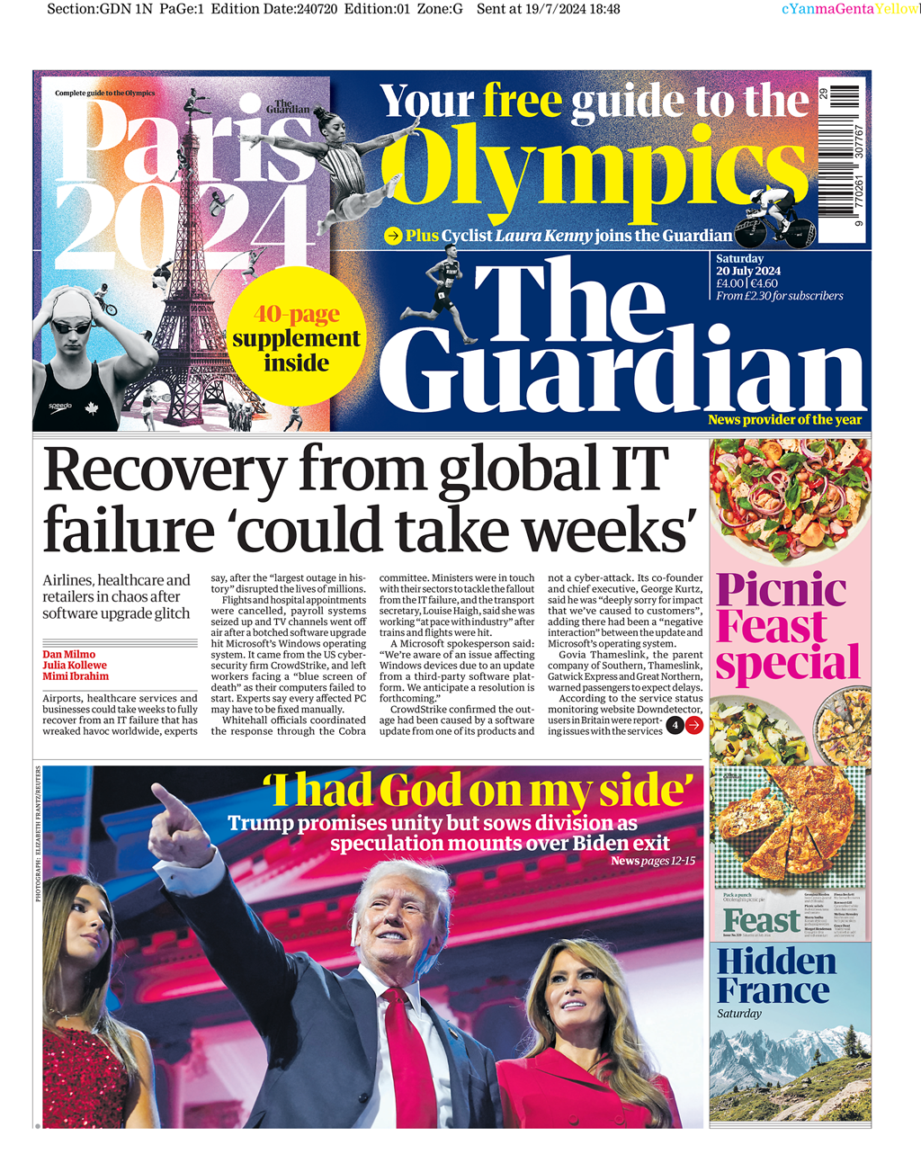 The Guardian reports that recovery from Friday’s global IT outage “could take weeks.