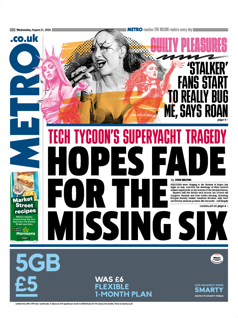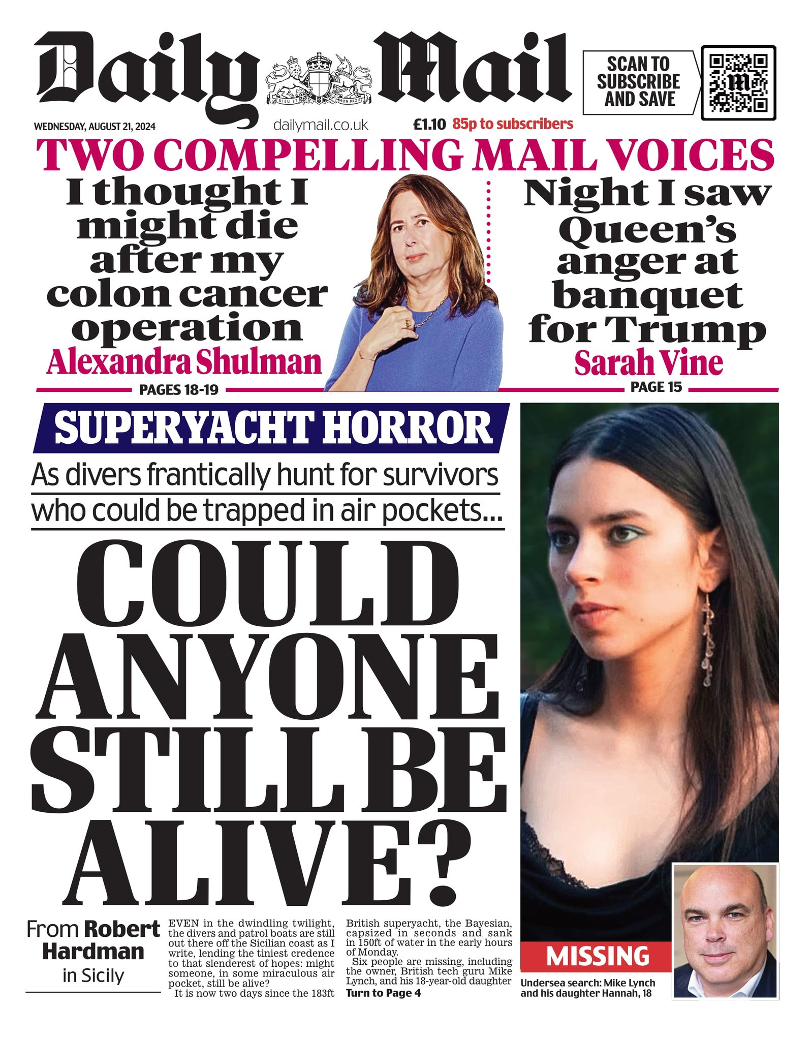 Divers and patrol boats are actively searching for survivors who might be trapped in air pockets after the British superyacht, the Bayesian, capsized and sank off the coast of Sicily, leaving six people missing, including its owner Mike Lynch and his daughter.