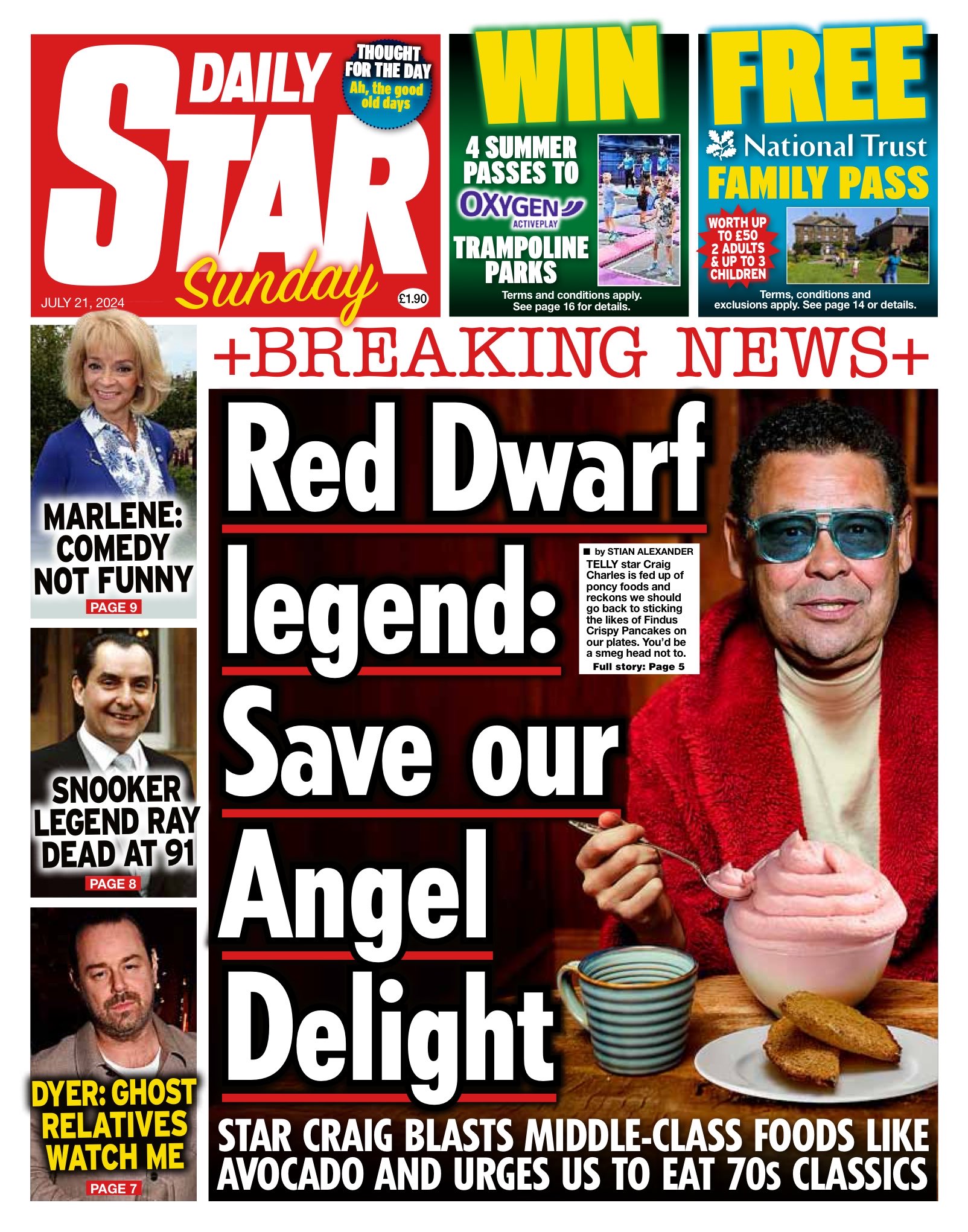 Television star Craig Charles has criticised contemporary trendy foods such as avocados, advocating for the revival of classic 1970s dishes like Angel Delight.