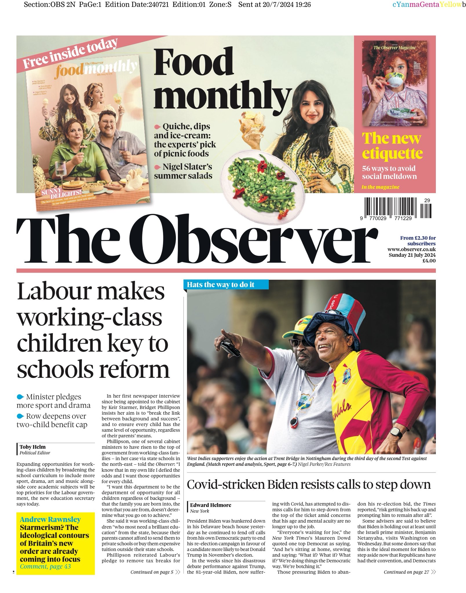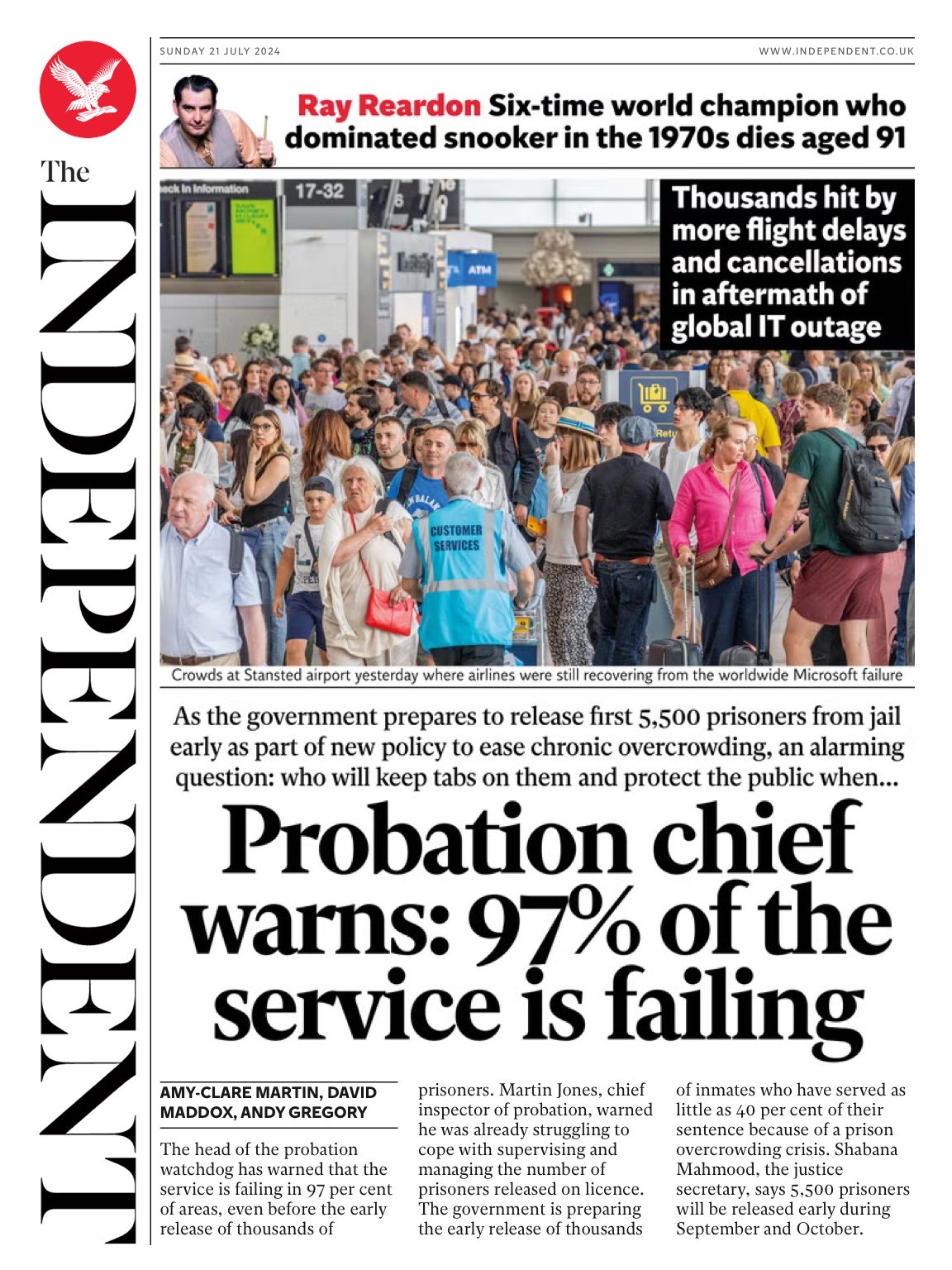 Sunday Times Front Page 21st of July 2024