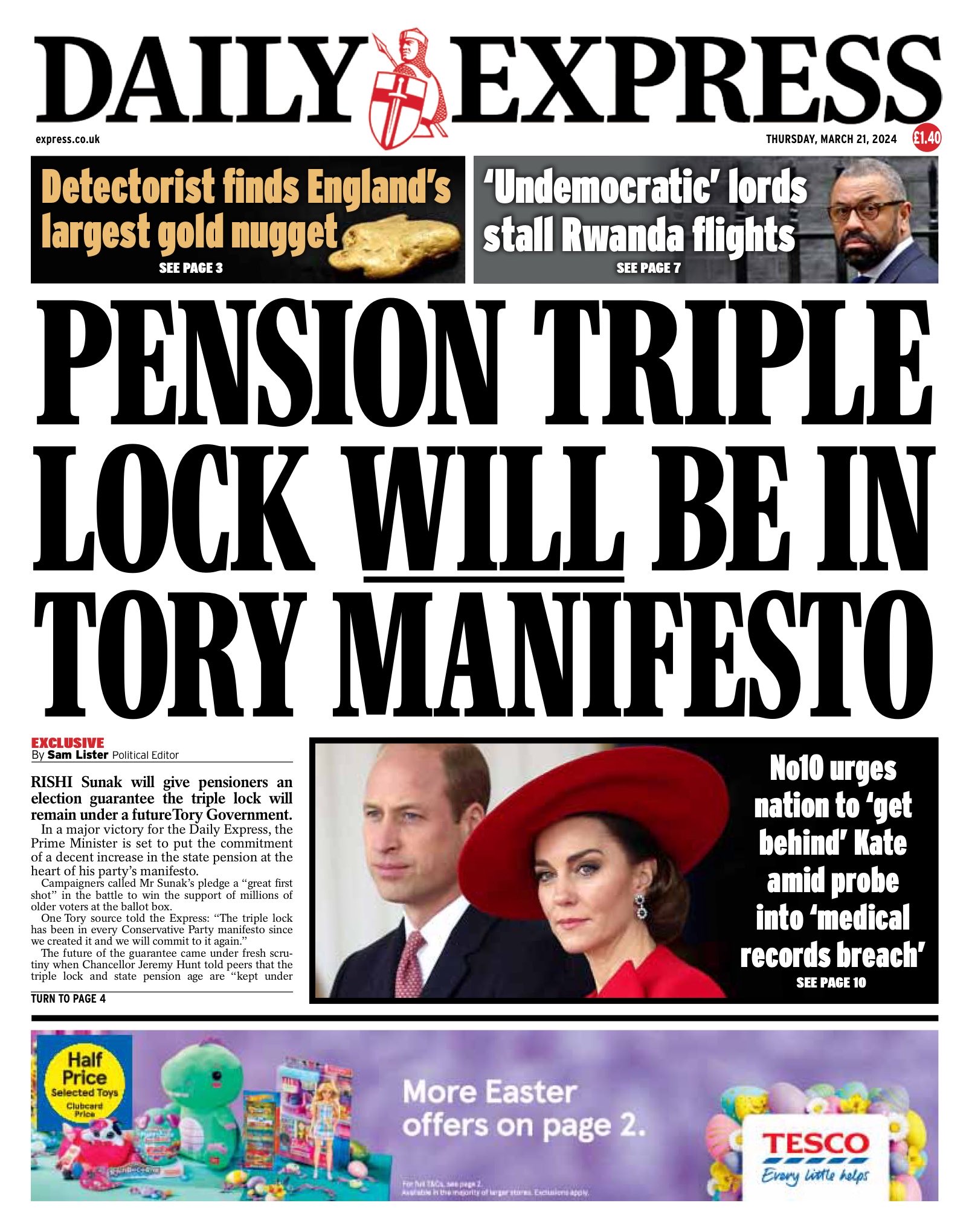 The Daily Express reports that the Conservative election manifesto will once again include the pensions triple lock.