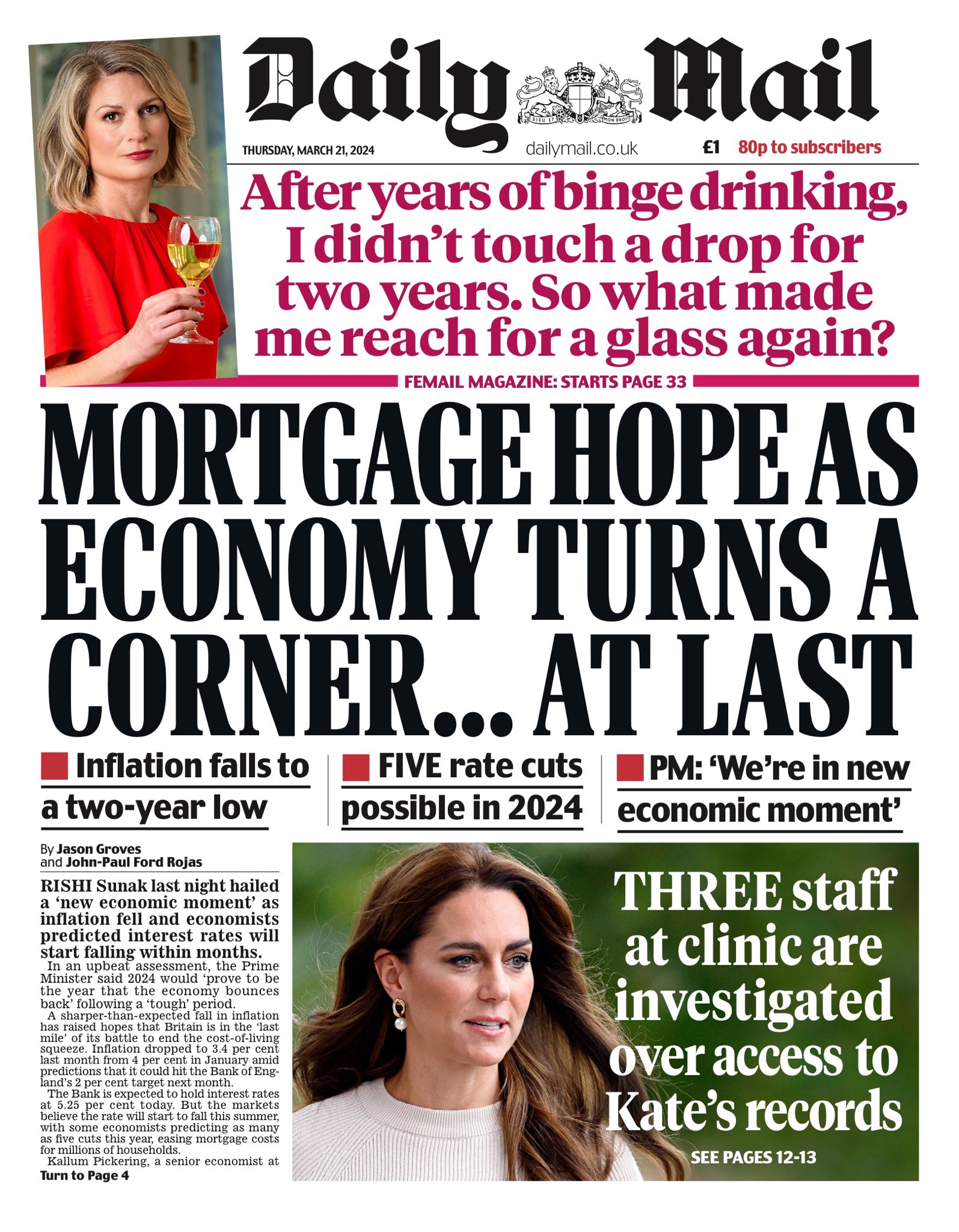 The Daily Mail anticipates a drop in mortgage rates by 2024 following a decrease in inflation.