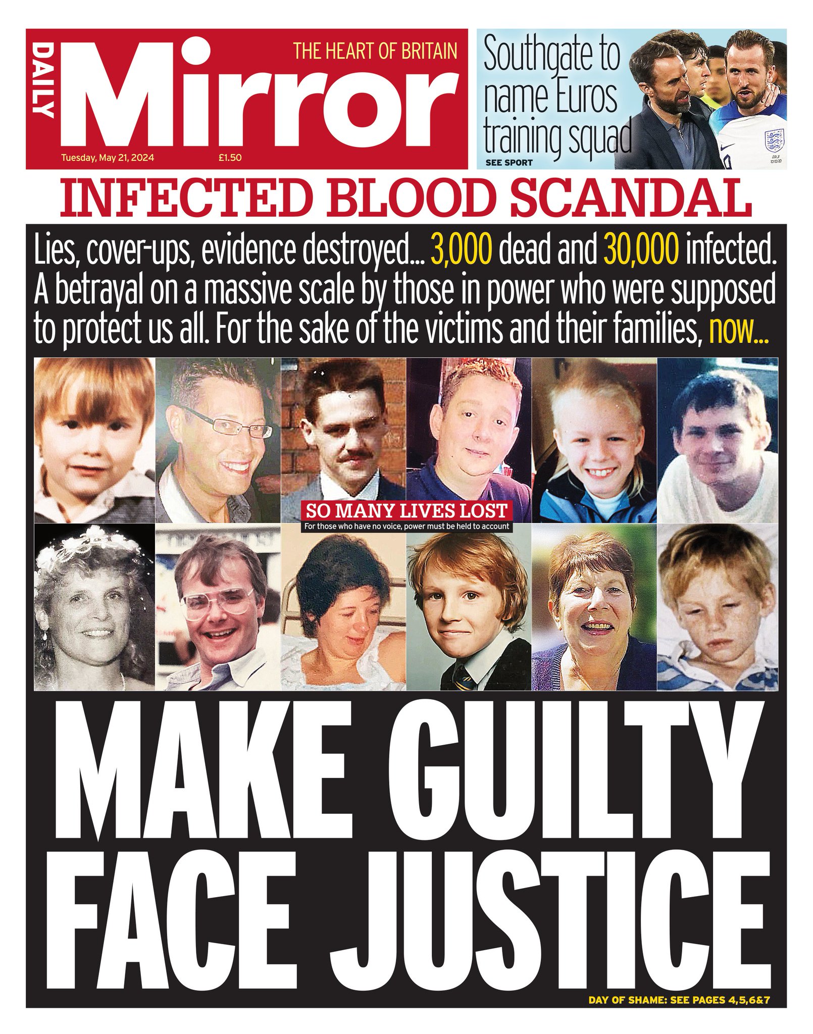 The Daily Mirror demands justice for the massive betrayal of the infected blood scandal.