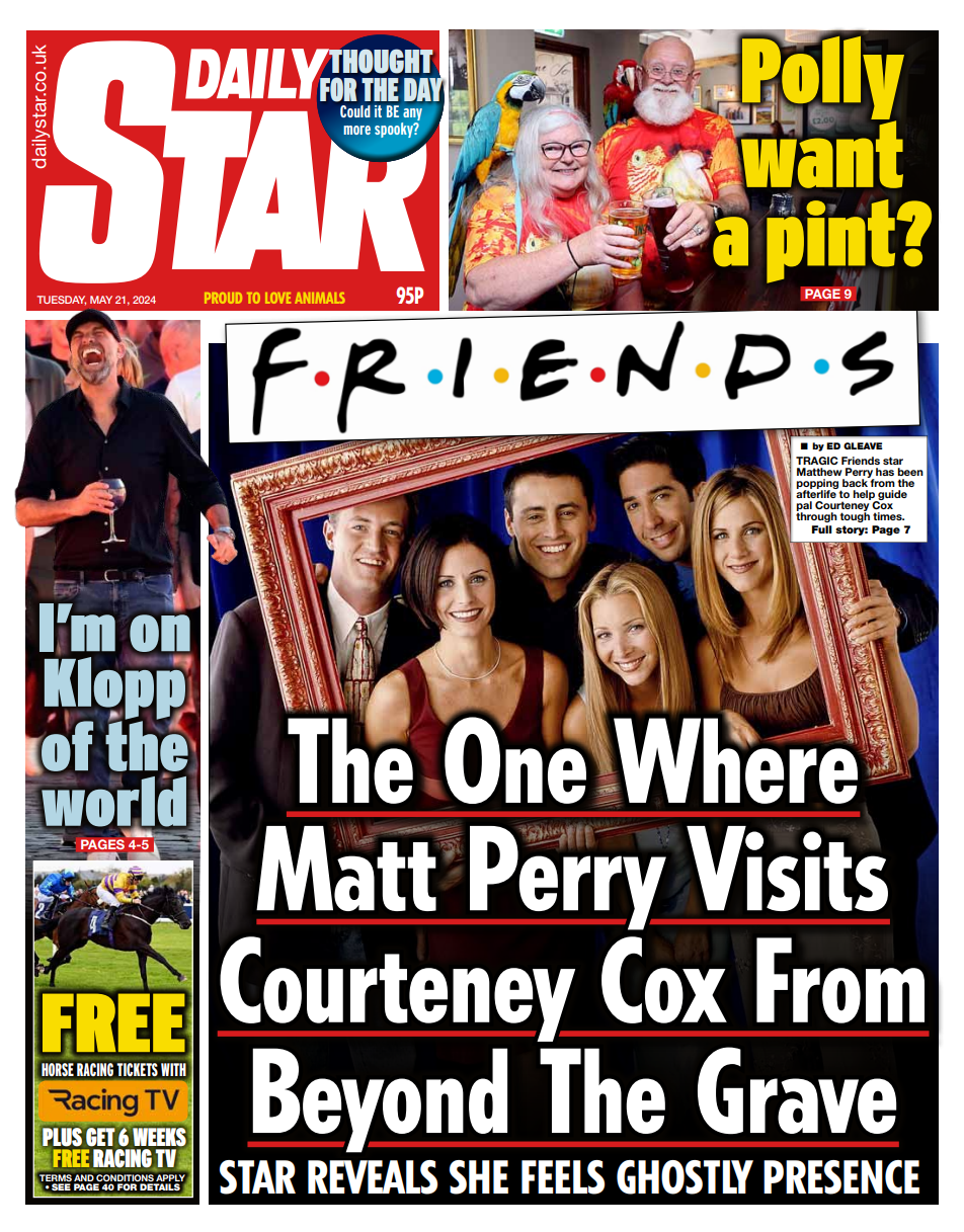 The Daily Star reports on Courtney Cox’s claim of receiving visits from her deceased Friends co-star, Matthew Perry.