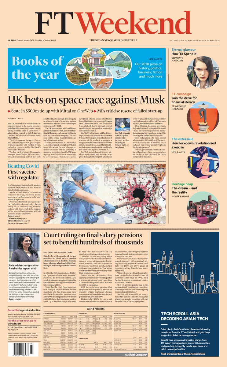 The Financial Times says the UK is betting £375m of taxpayers’ money in a race to become a global satellite internet provider, competing with the likes of Elon Musk’s SpaceX and Amazon.