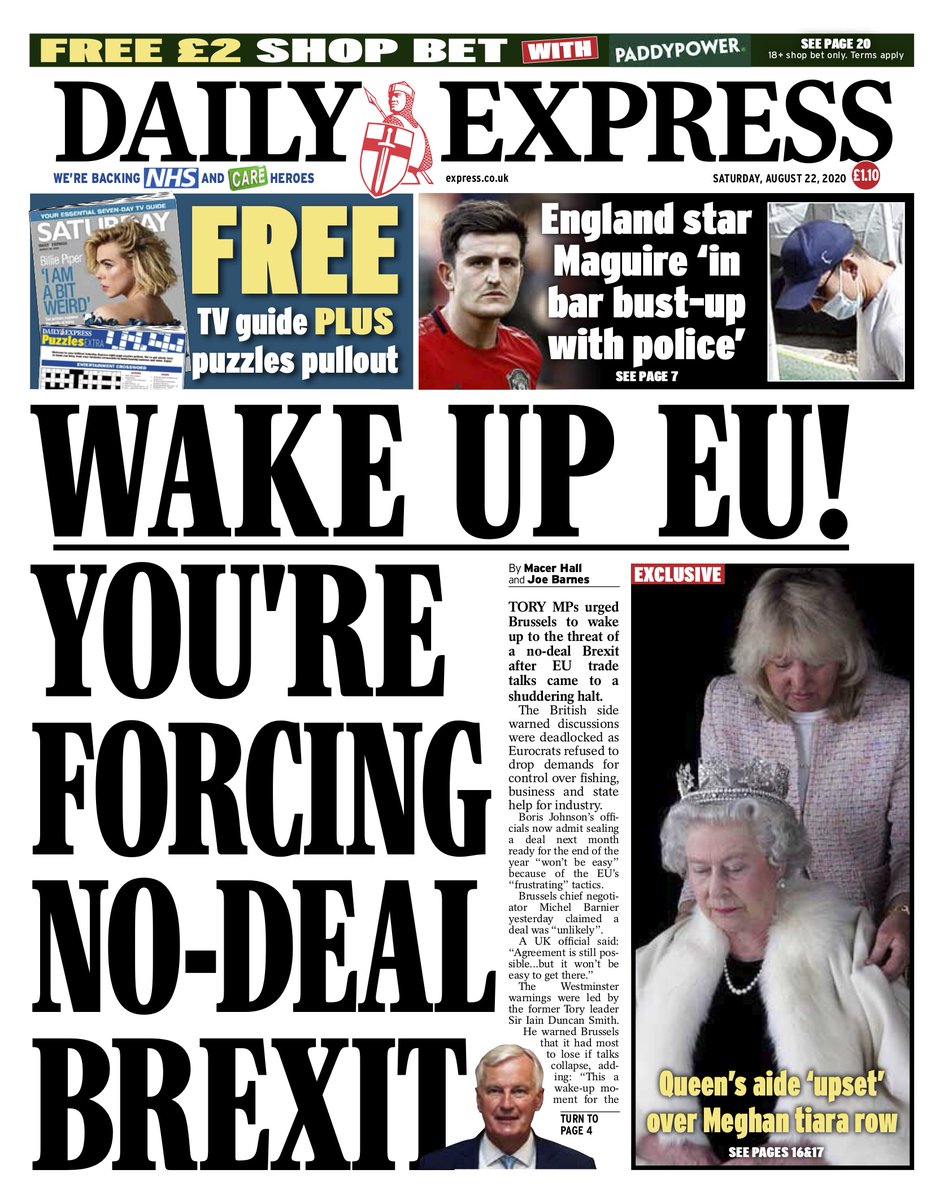The Daily Express lead story suggests Tory MPs are blaming the EU for the prospect of a no-deal Brexit.