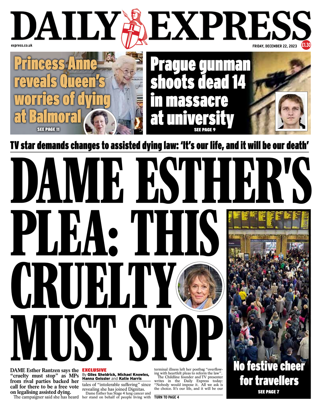 Esther Rantzen discloses the harrowing tales of suffering she’s encountered since joining Dignitas, as reported by the Daily Express.
