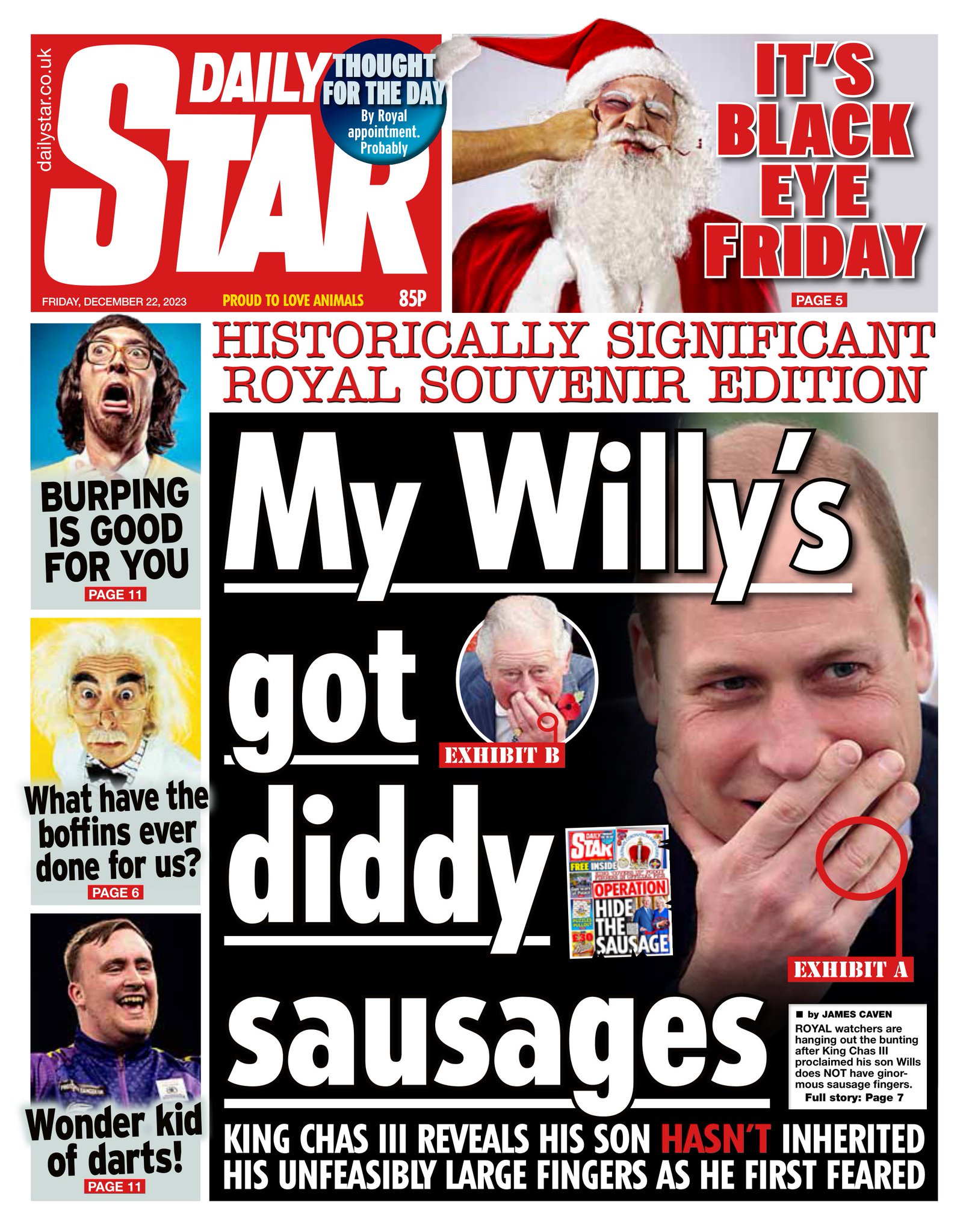 The Daily Star focuses on the peculiar size of Prince William’s fingers.