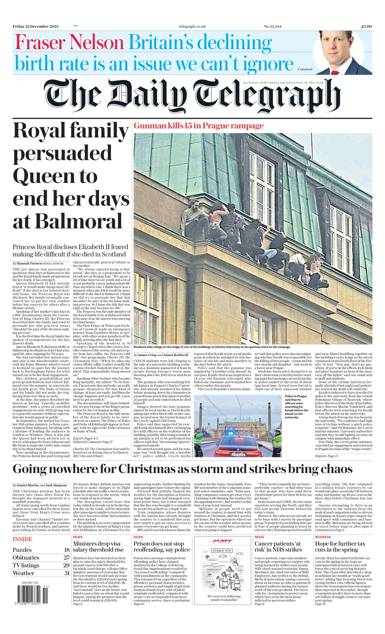 The Daily Telegraph reveals the late Queen’s decision to spend her last days at Balmoral for comfort, despite her concerns for others.