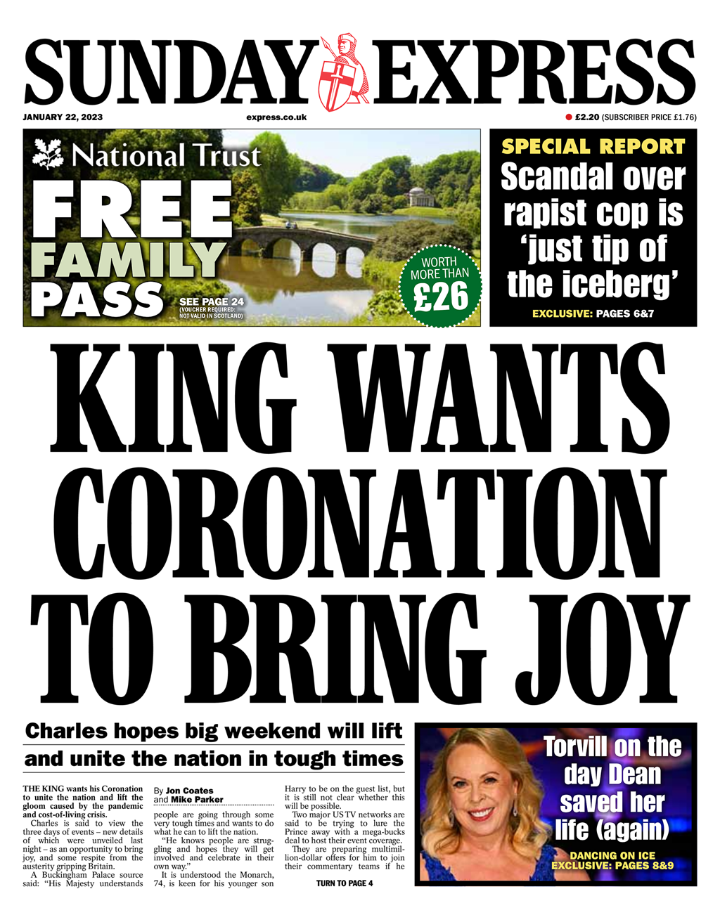 According to the Sunday Express, the King wants his Coronation to unite the nation and lift the gloom caused by the pandemic and the cost of living crisis.