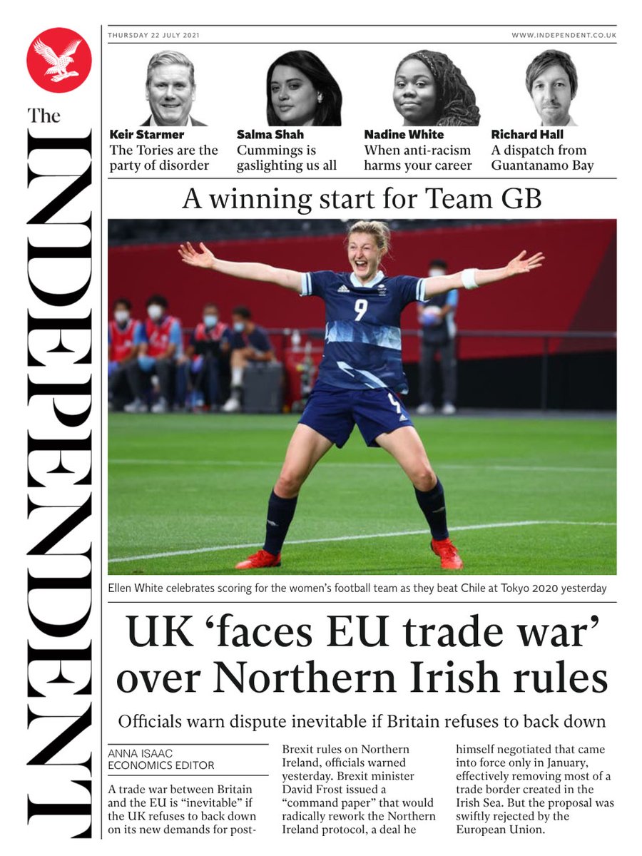 Supermarkets say that a growing number of staff and delivery drivers are being forced to isolate due to possible COVID-19 exposure, leaving shelves bare in some parts of the UK – that’s on the front of The Times.