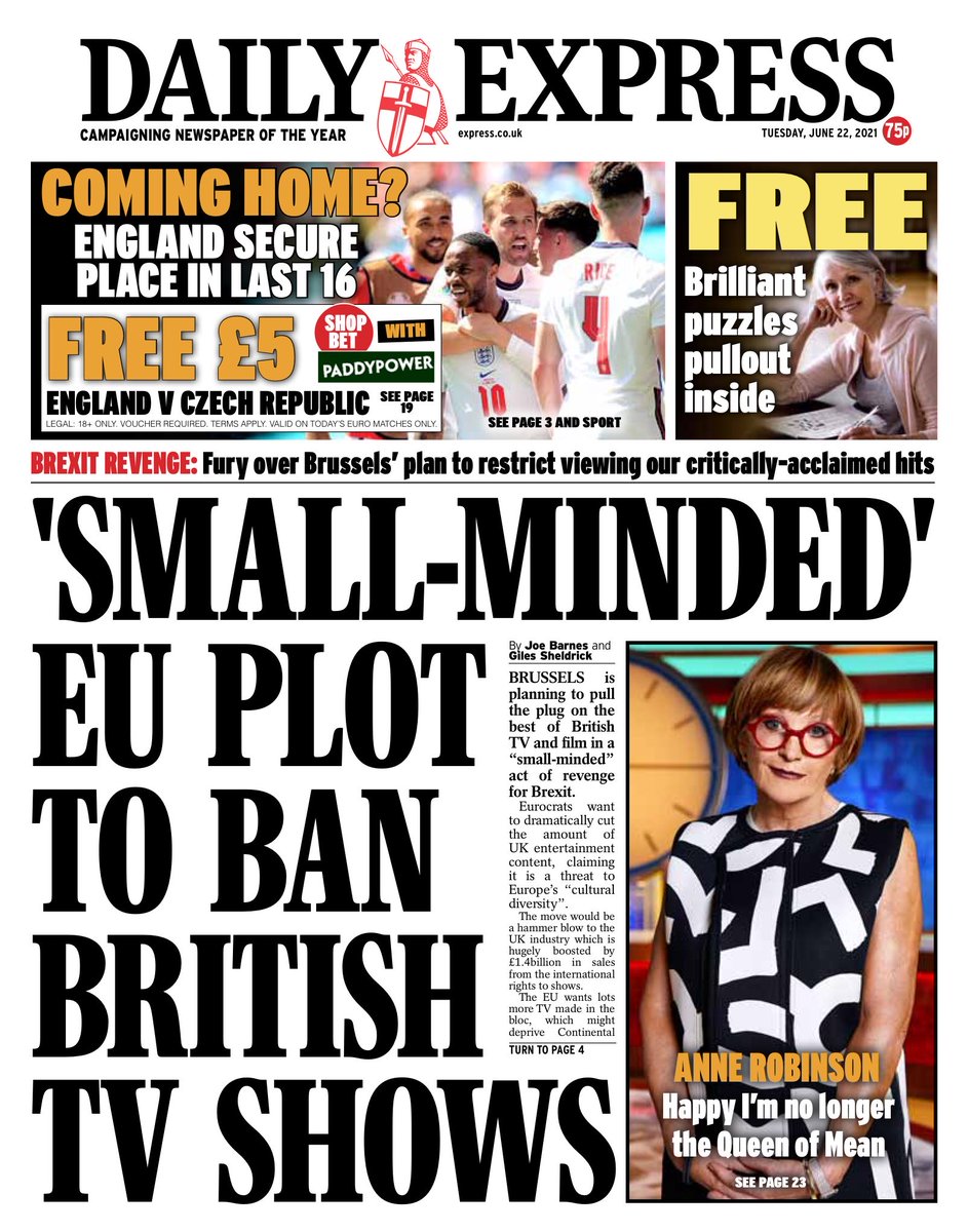 Brussels is planning to reduce the amount of British TV shown on the continent, the Daily Express says.