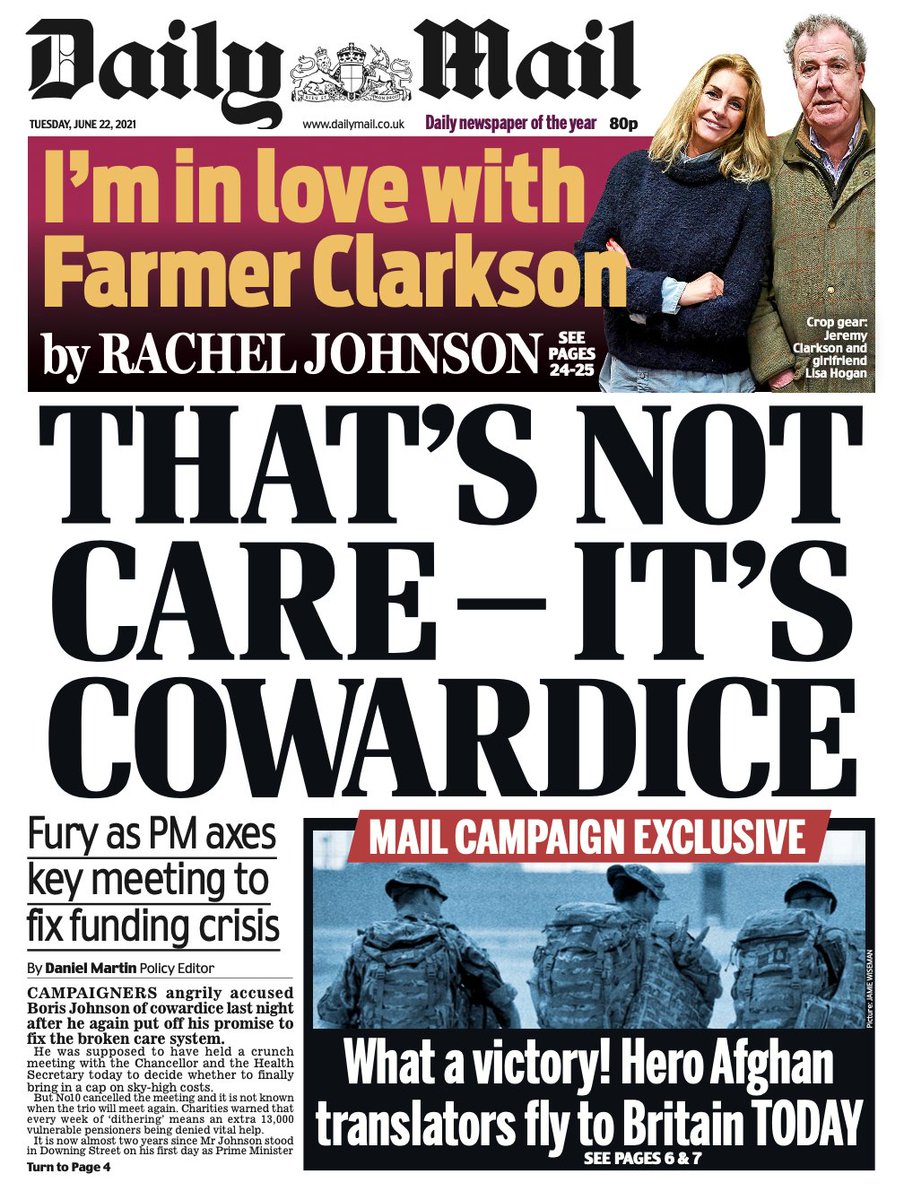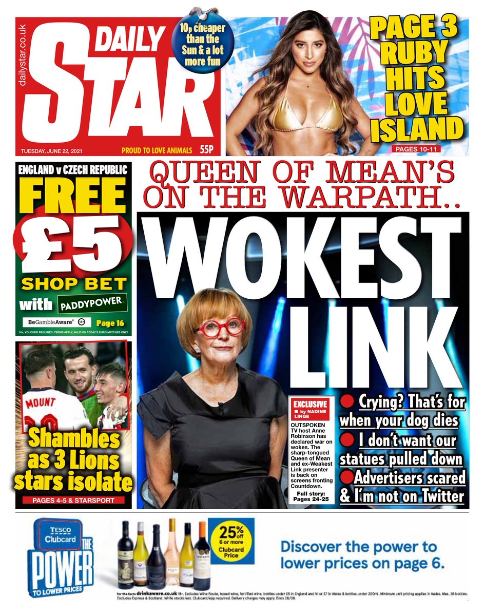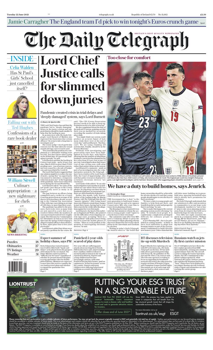 Daily Mirror Front Page 22nd of June 2021