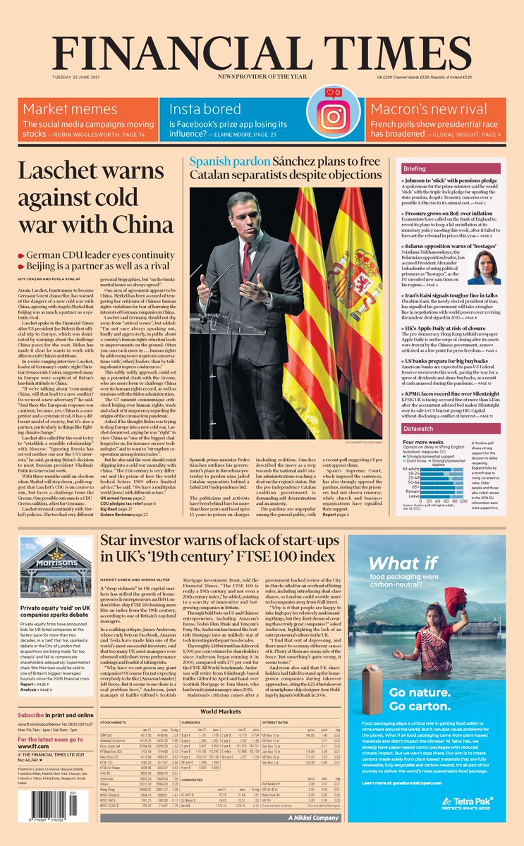 Armin Laschet, who is tipped to become Germany’s next chancellor, warns of the dangers of a new cold war with China in an interview with the Financial Times.
