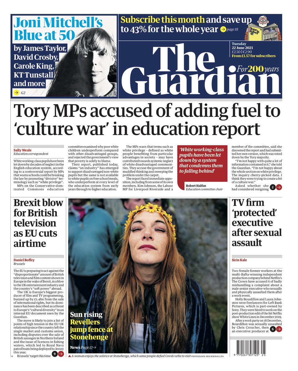 The Guardian leads with a report from MPs which says white working-class pupils have been let down by decades of neglect in the English education system.