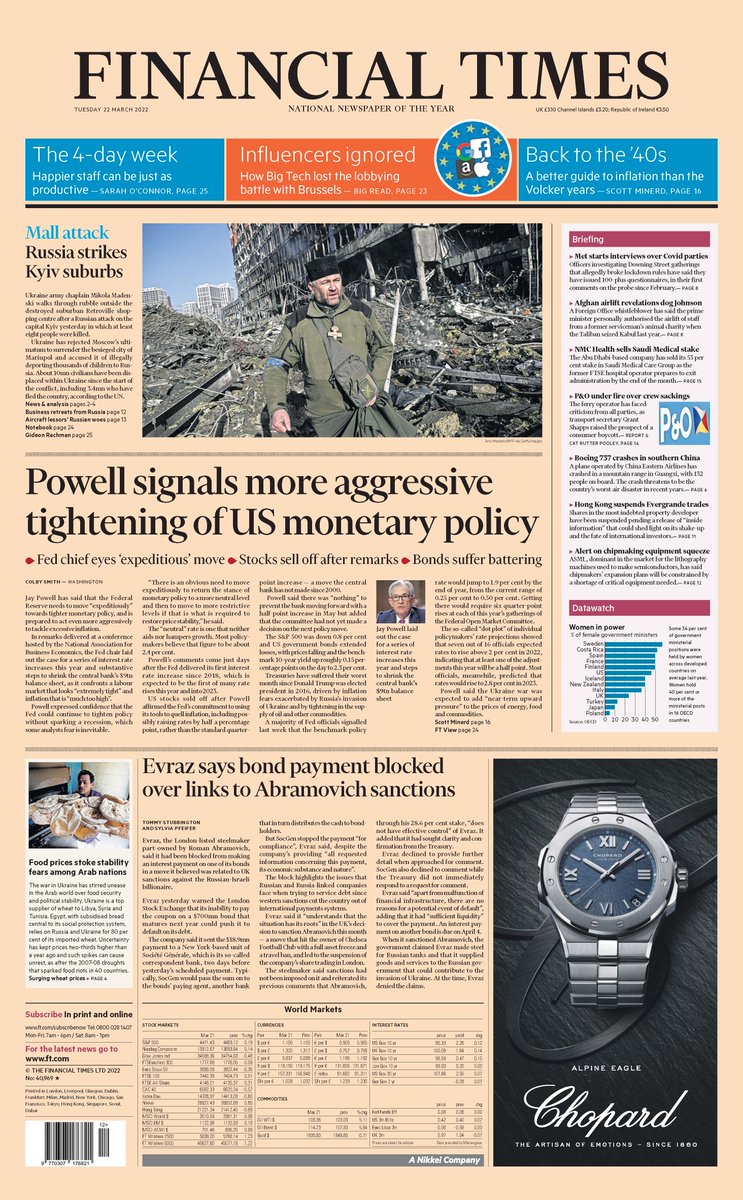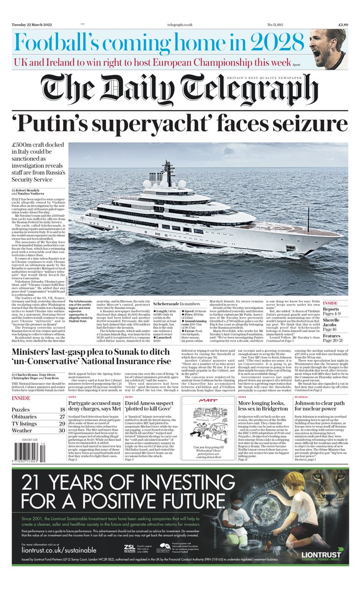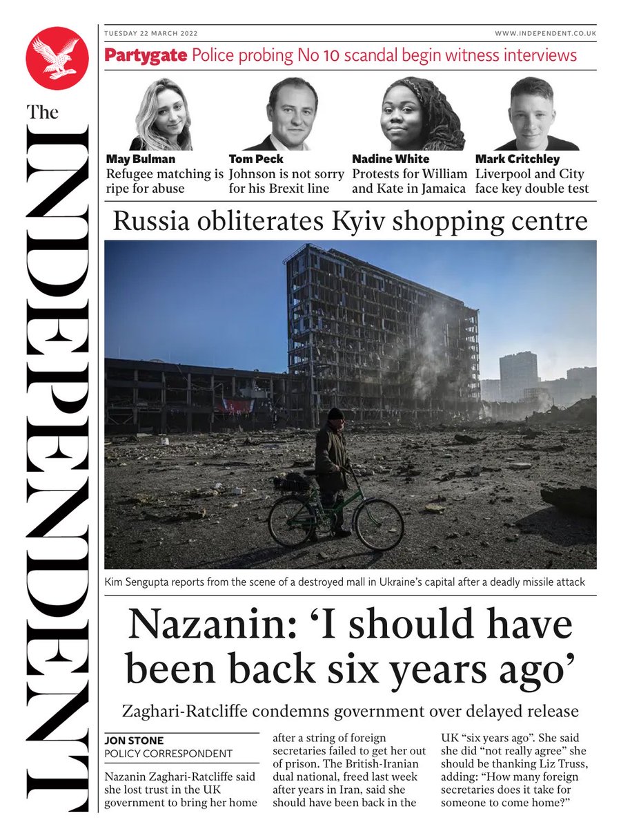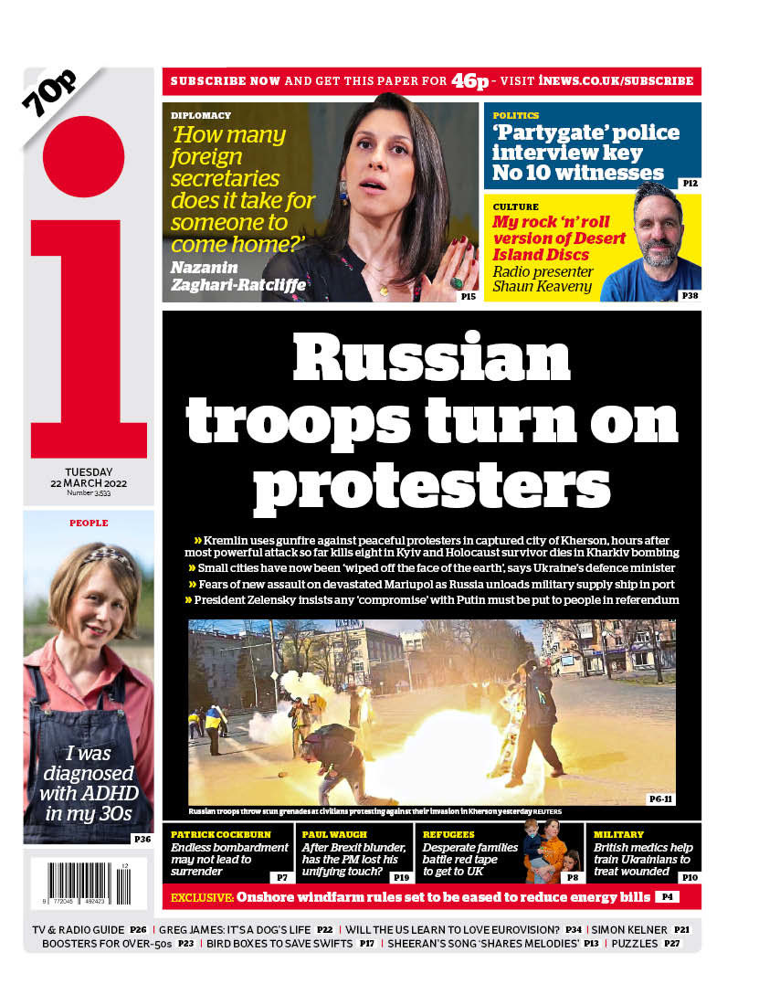 Daily Mirror Front Page 22nd of March 2022
