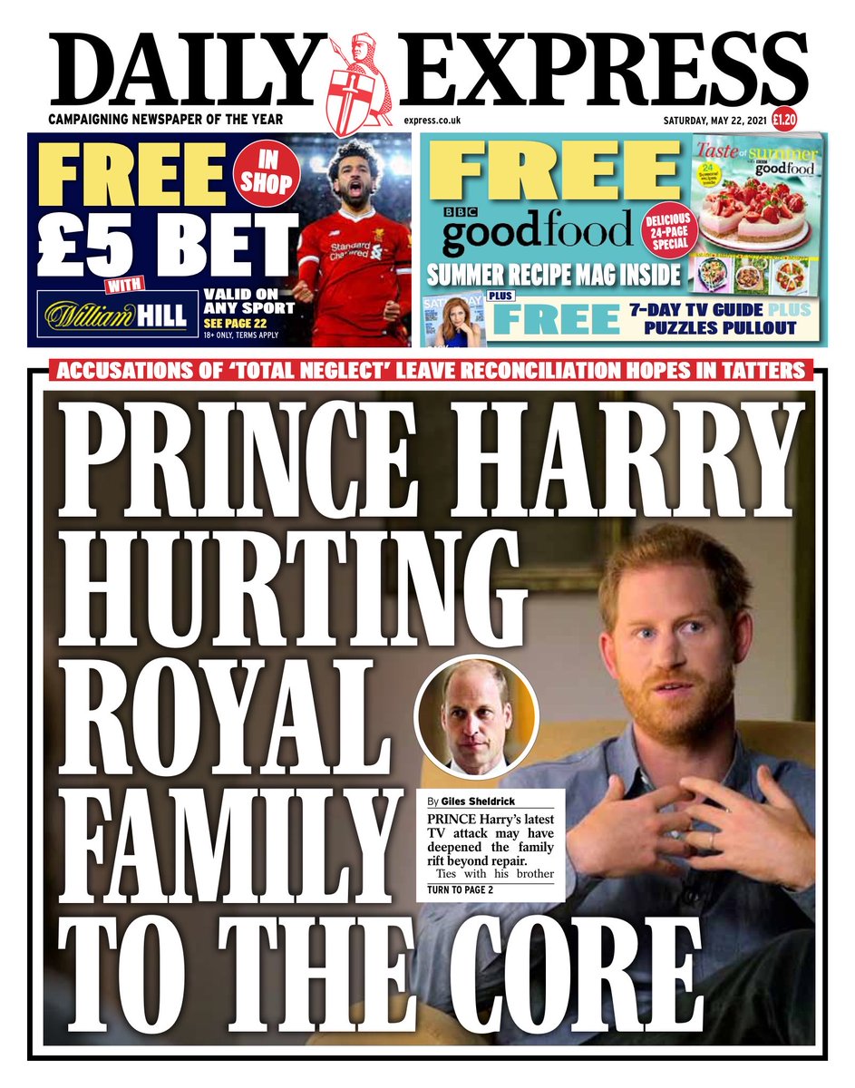 Prince Harry’s latest interview may have deepened his rift with the royal family “beyond repair” – that’s the lead in the Daily Express.