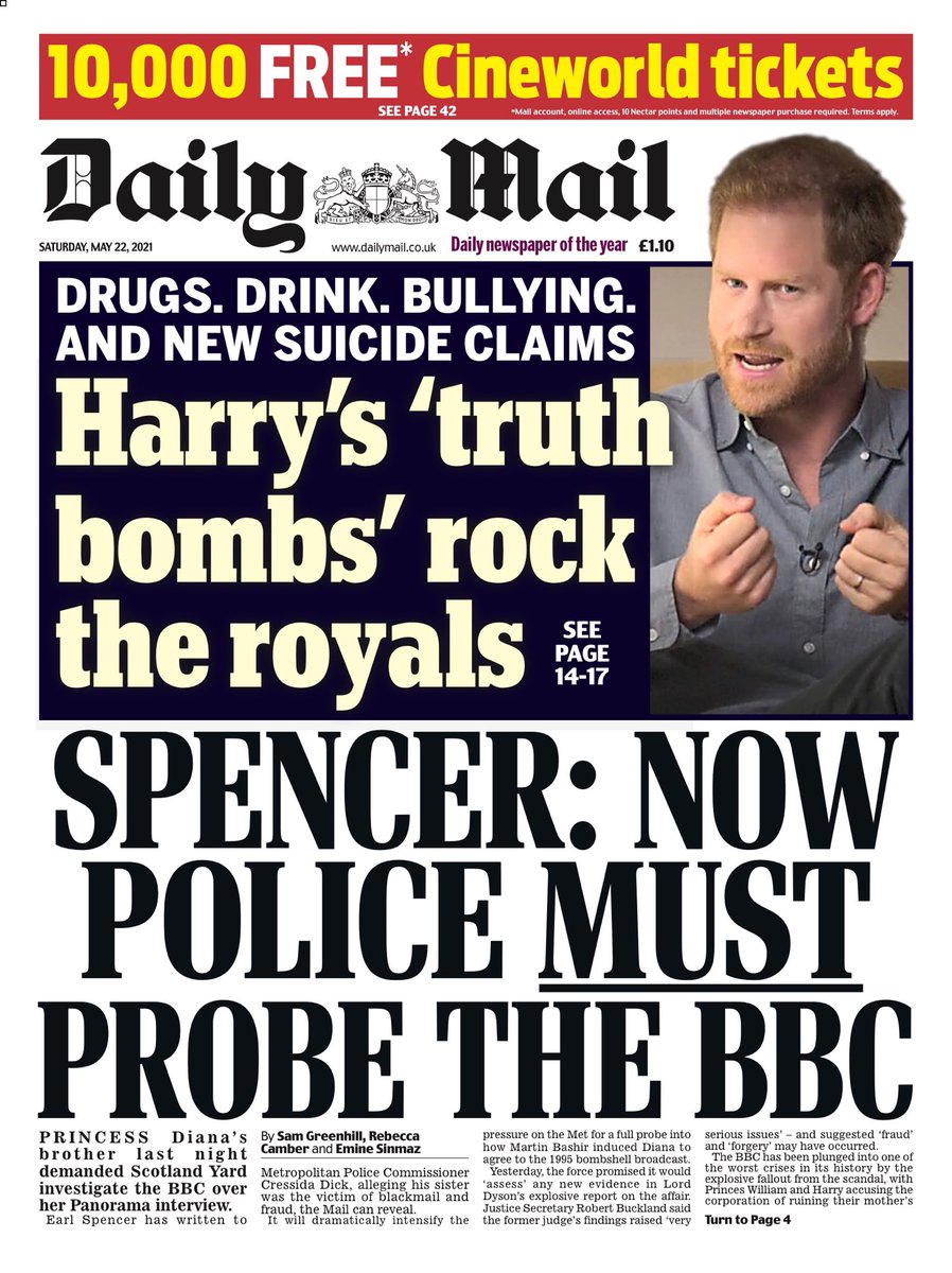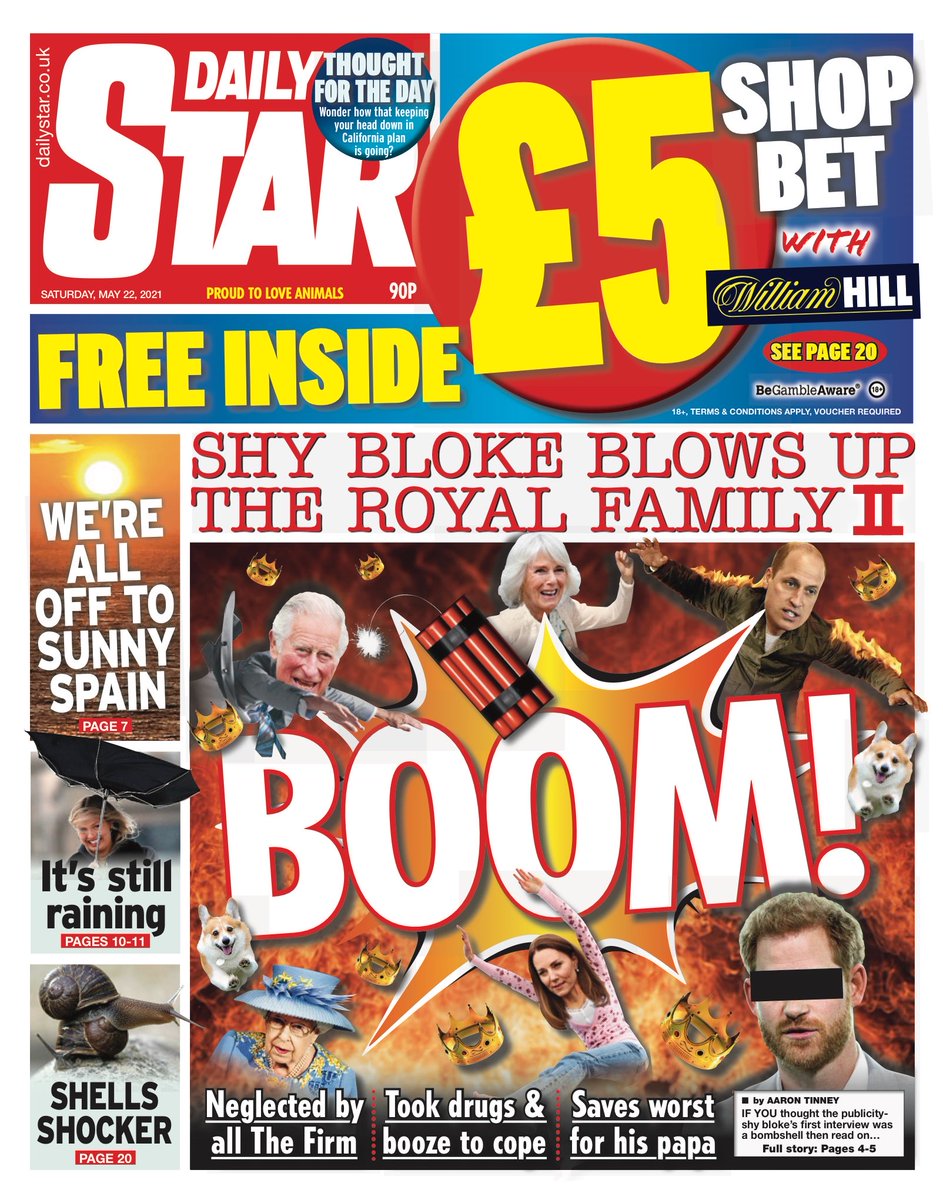 The Daily Star accuses Prince Harry of blowing up the royal family who “saved his worst for his papa” in his latest TV interview.