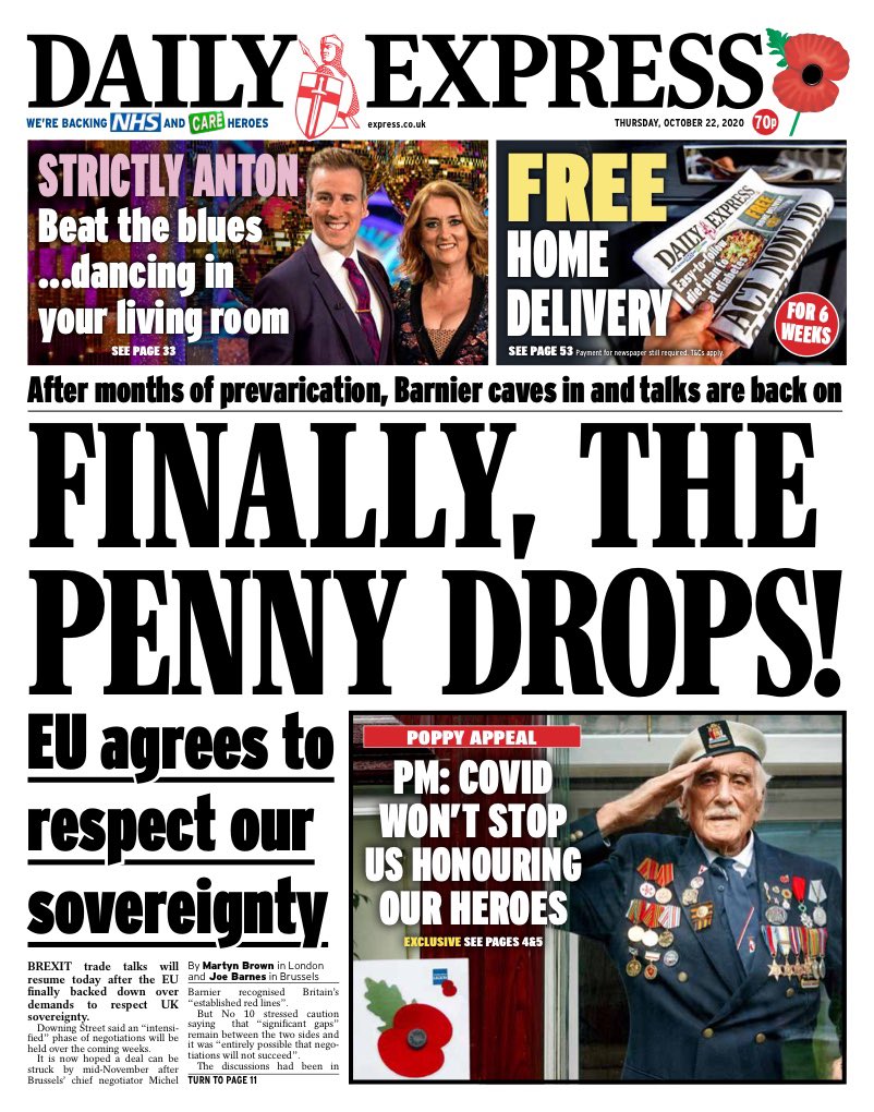 The Daily Express says that the EU talks will resume next week, after the bloc agreed to back down over demands to respect UK sovereignty.